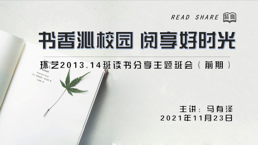 为培养班级学生阅读积极性,提高班级凝聚力。建筑与环境艺术学院环境设计专业20级13、14班于2021年11月至12月开展读书月活动。活动分为三个部分: