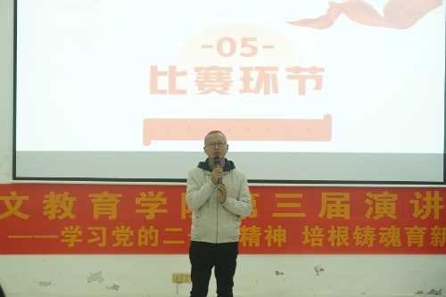 为进一步推动教学实践改革,展现我院学生风采,营造尊师重教氛围,培养和激发学生理想信念,加强专业角色认知,2022年12月2日,人文教育学院“学习党的二十大精神培根铸魂育新人”第三届师德师风演讲比赛决赛于东校区多媒体2教室顺利举行。