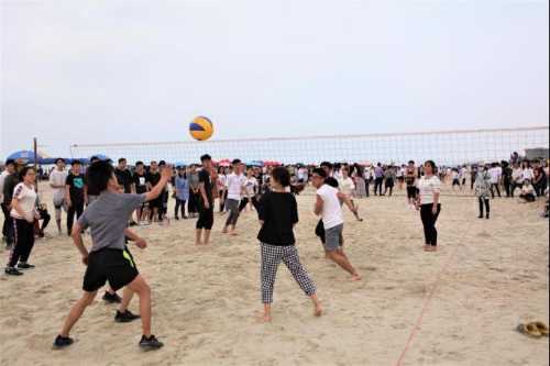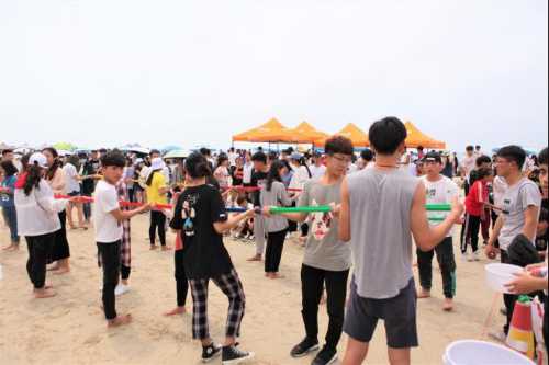 伴随着领导一声“我宣布沙滩运动会正式开始!”熙熙攘攘的人群向沙滩迅速移动。找到自己班级所在的沙雕场地,建立属于我们的大本营。搭遮阳伞,搬水,拿铁锹,大家有条不紊的忙碌着。蔚蓝的大海,金黄的沙滩,来往的游客。今日,我们便是银滩最美的风景。