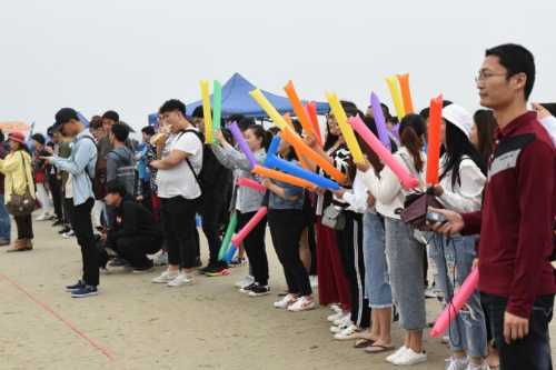 我们抵达银滩迅速找到动画学院所在位置,因为我们安排了旗手提前到达银滩,找到位置发出位置信息,并高举动画学院旗帜让人看到。听完开幕式演讲后,第17届沙滩运动会暨第13届沙雕比赛正式开始!