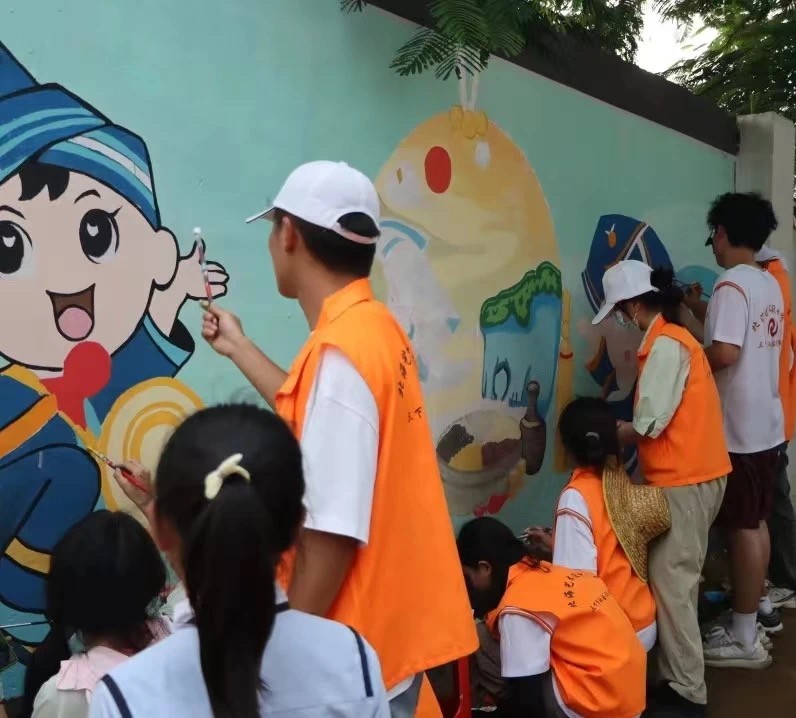北艺学子与当地居民一起