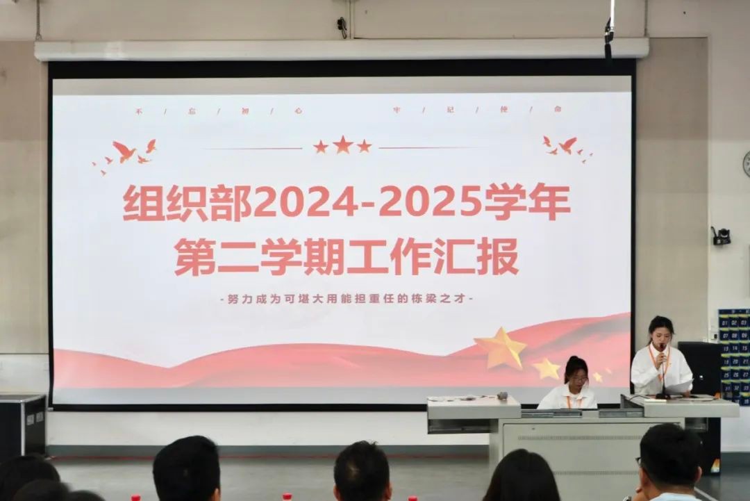团委组织部负责人黄祝焱以播放工作视频的形式回顾本学期工作亮点。本学期,组织部在入党推优、团费收缴、团员证注册、发展团员、入团培训、五四评优、团日活动组织、推文撰写、部门例会开展、量化考核实施及值班安排等工作上成果显著。但存在工作流程繁琐、层级关系复杂、部分成员积极性欠缺、沟通不畅、活动形式同质化等问题。未来,组织部计划增进成员交流,完善量化考核机制,加强工作监督,精心策划特色活动,优化工作架构,提升工作效率和校园文化氛围。