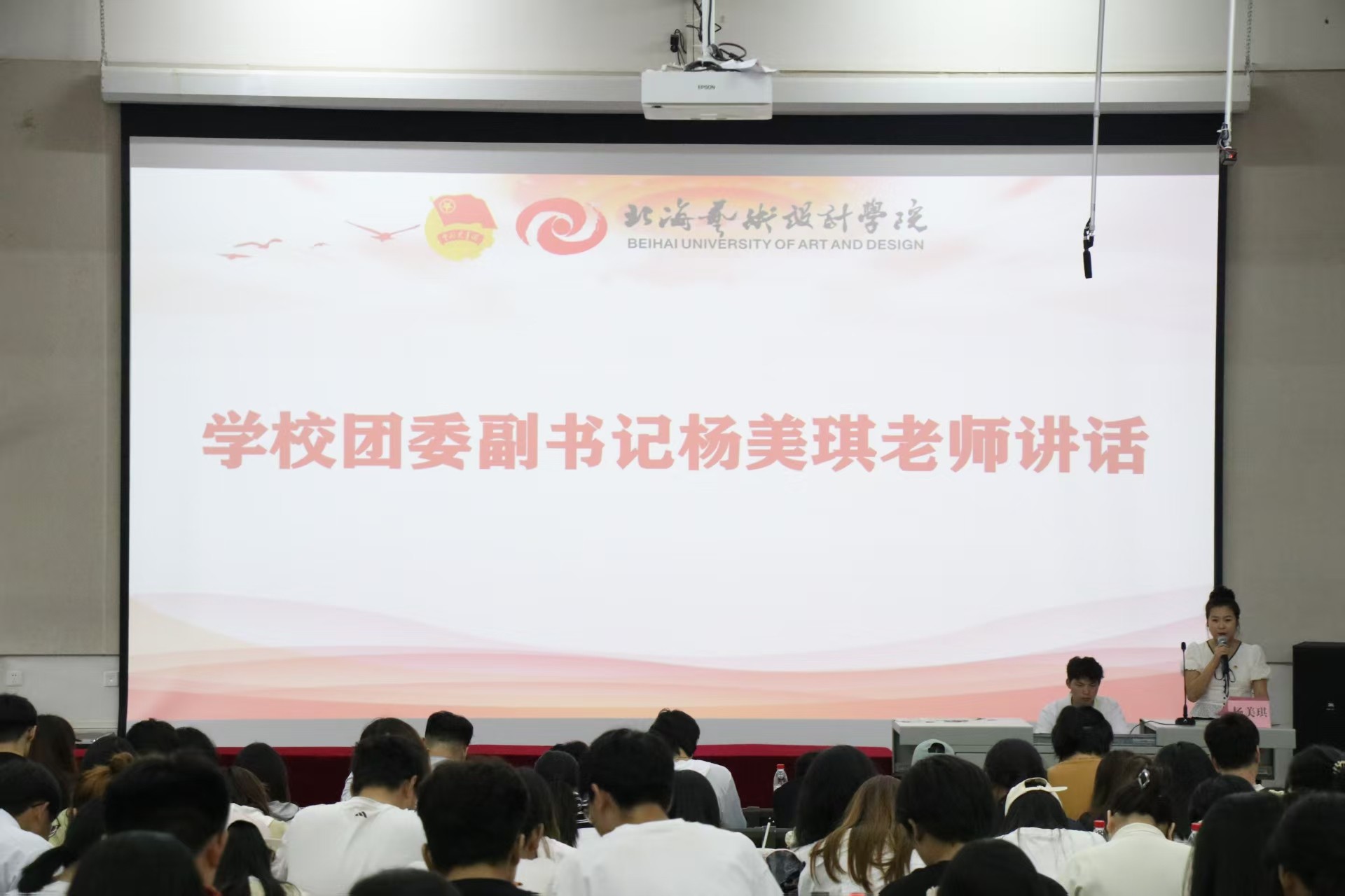 最后,大会秘书长杨美琪发表讲话。她回顾过去一年校学生会在思想引领、校园文化活动中取得的显著成效,强调学生会是连接学校与学生的桥梁,并向青年学子提出两点希望:一是坚定理想信念,牢记习近平总书记嘱托,以党的创新理论武装头脑;二是将个人理想融入国家发展大局,在新时代奋发有为。