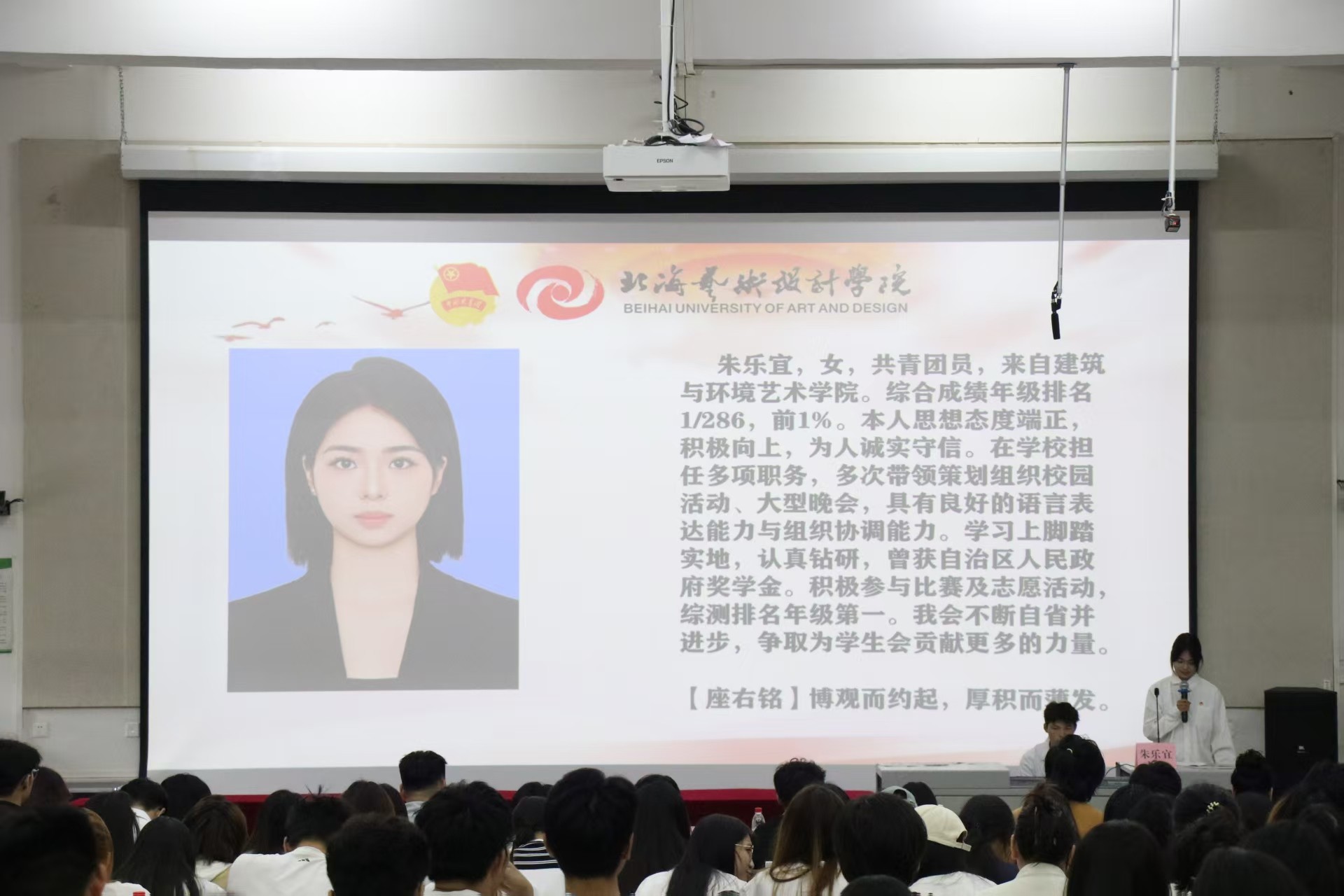 当悠扬激昂的校歌在会场内缓缓奏响,我校第十八次学生代表大会至此画上圆满句号。青春逢盛世,奋斗正当时,让我们将青春的智慧与力量倾注于学校的发展建设之中。在全体师生的勠力同心下,我校必将在新征程上镌刻下璀璨荣光,共同擘画更加灿烂的未来蓝图 。(高泽娅、戚叶洋/摄)大会秘书长杨美琪讲话