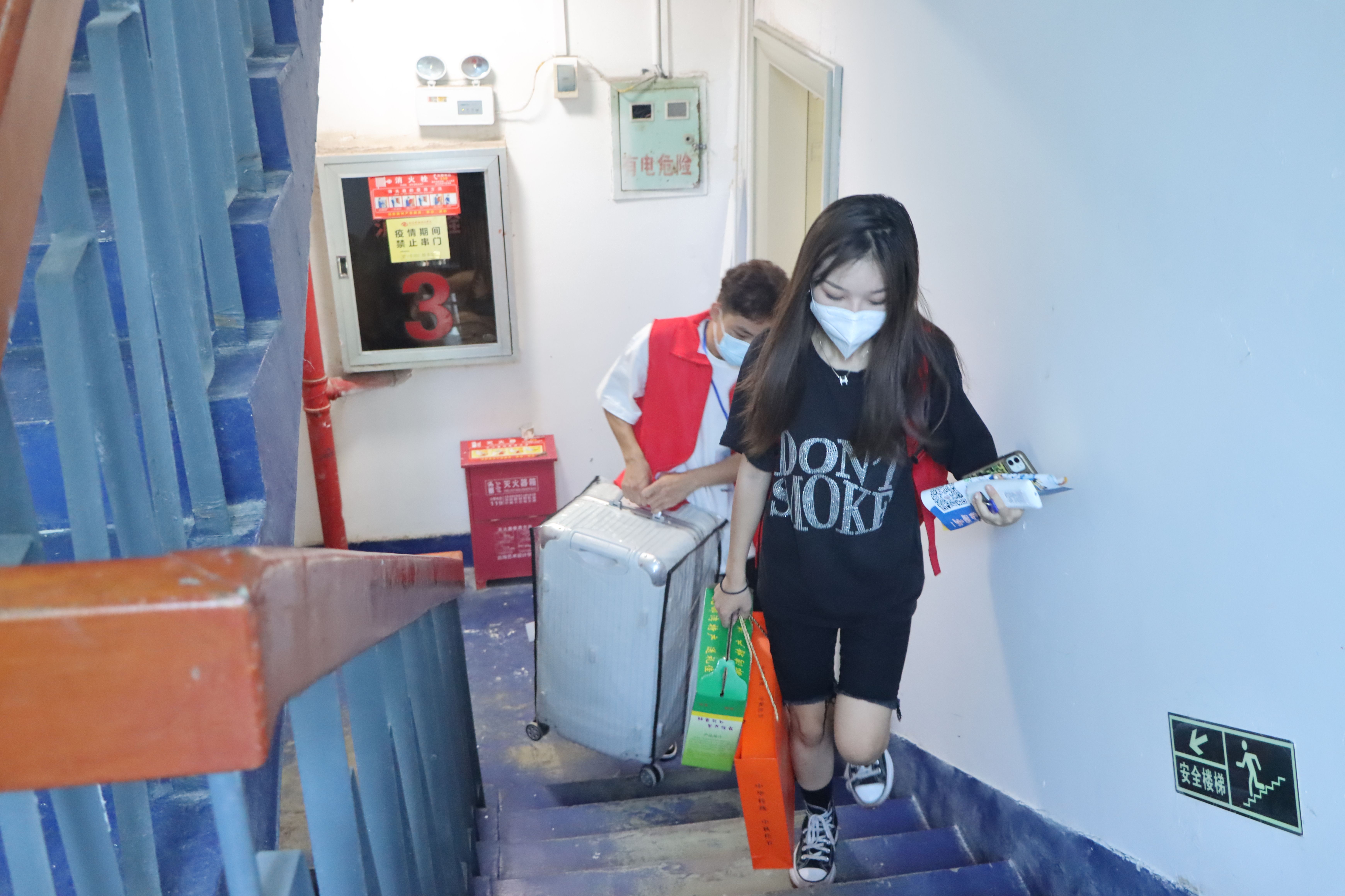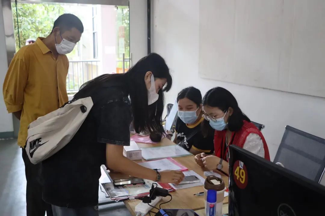 为确保新生入学工作的顺利开展,学校在北海火车站、北海福成机场均安排了迎新车辆。新生到达学校后,有序排队测量体温、查验录取通知书、广西健康码、通信大数据行程卡,以及对其行李进行消杀,方可入校。