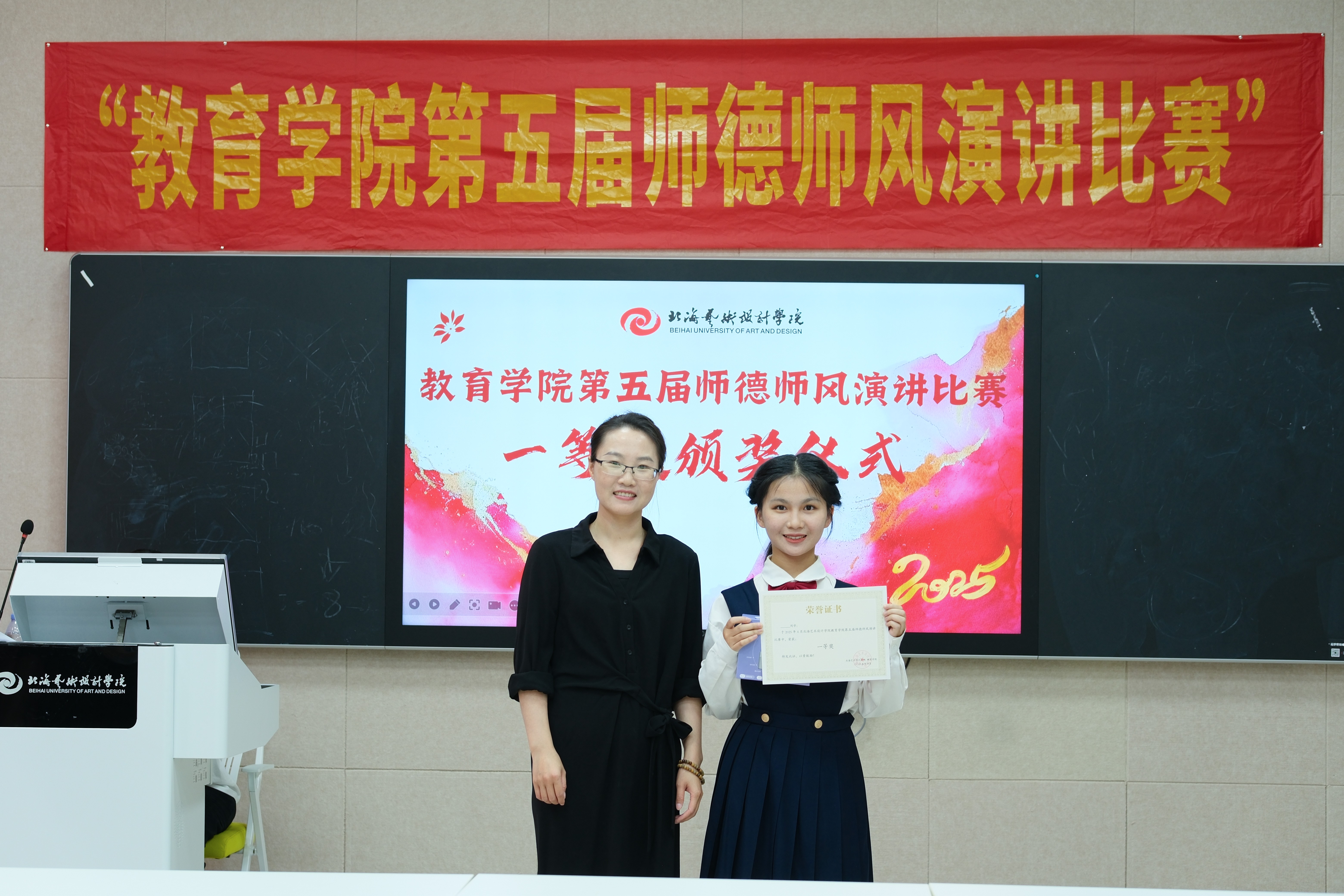 覃思主任为获得二等奖的丁朝旭、陈雅萱颁奖