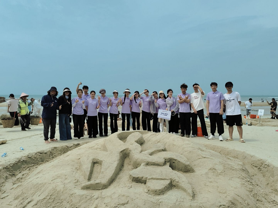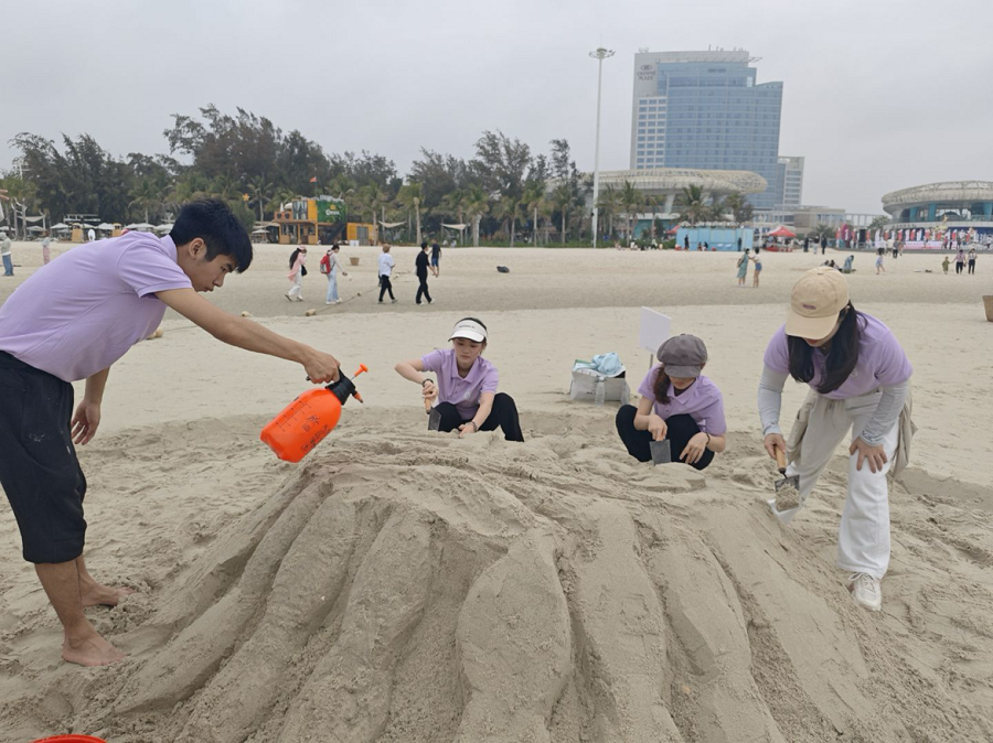 在比赛环节,舞蹈学院师生尽显卓越风采。在艺术沙雕比赛区域,舞蹈学院的老师和学生组织有序、分工合理,彼此紧密协作。