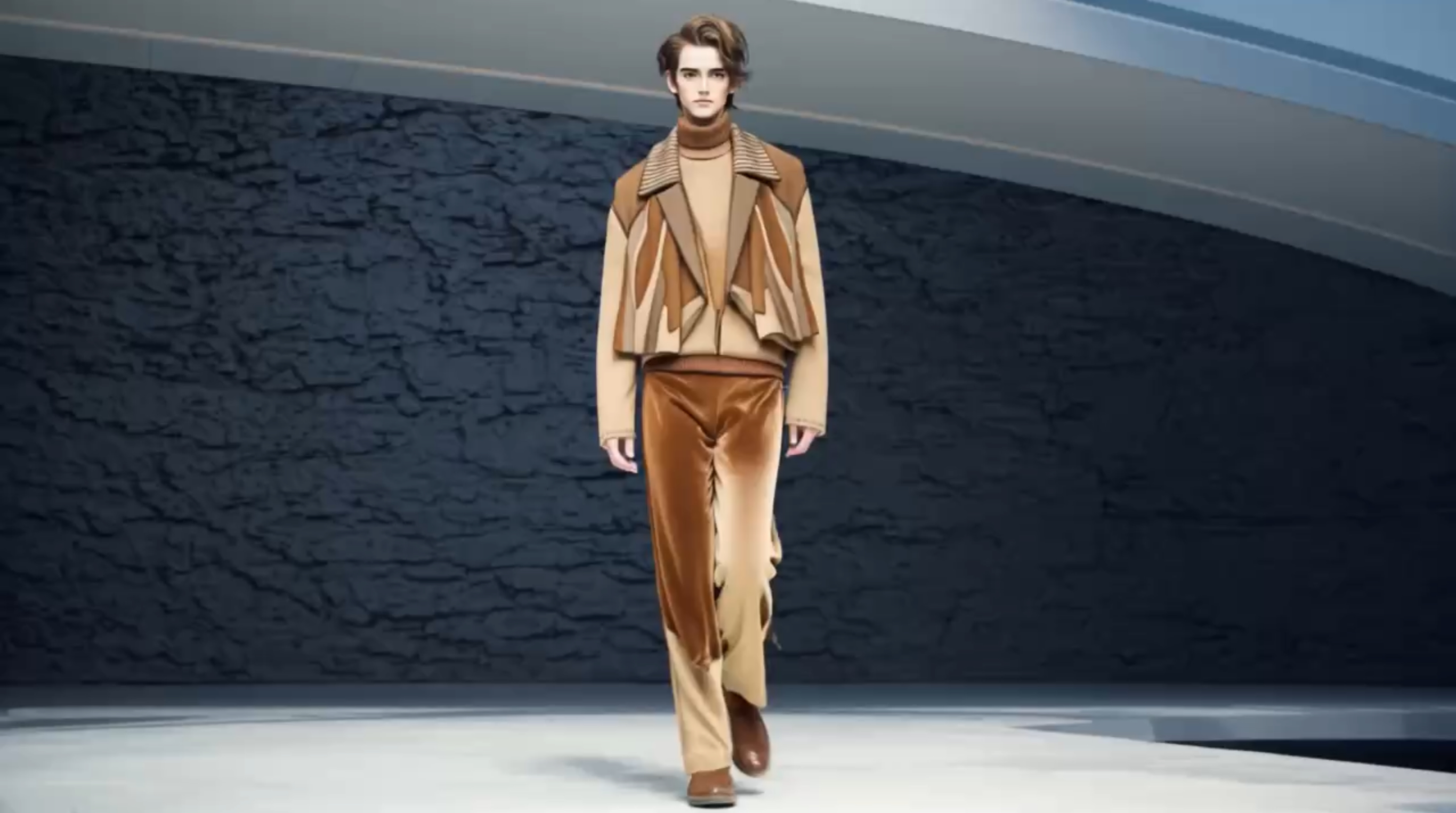 本次虚拟秀场以“溯”为主题,分为“溯源”“溯洄”“溯游”三个系列,分别聚焦文化传承、可持续时尚与现代创意设计,汇聚了119位毕业生的设计作品,集中展示了200余套数字实物成衣,全面展现新一代青年设计师对时尚的理解与实践。本次虚拟时装秀由服装学院师生组成的AI时尚团队以AI生成模型为创作引擎,通过对大量手绘效果图和成衣大片图像数据的训练,精准理解并还原服装的色彩氛围、面料质地和廓形结构,从而生成虚拟动态视频,再由AI艺术学院师生团队进行后期渲染与剪辑,实现了从草图到成衣再到虚拟时尚形象的智能创作,深度结合了现实与虚拟效果交互,呈现了AIGC融入教学改革、跨专业交流等方面的最新成果。