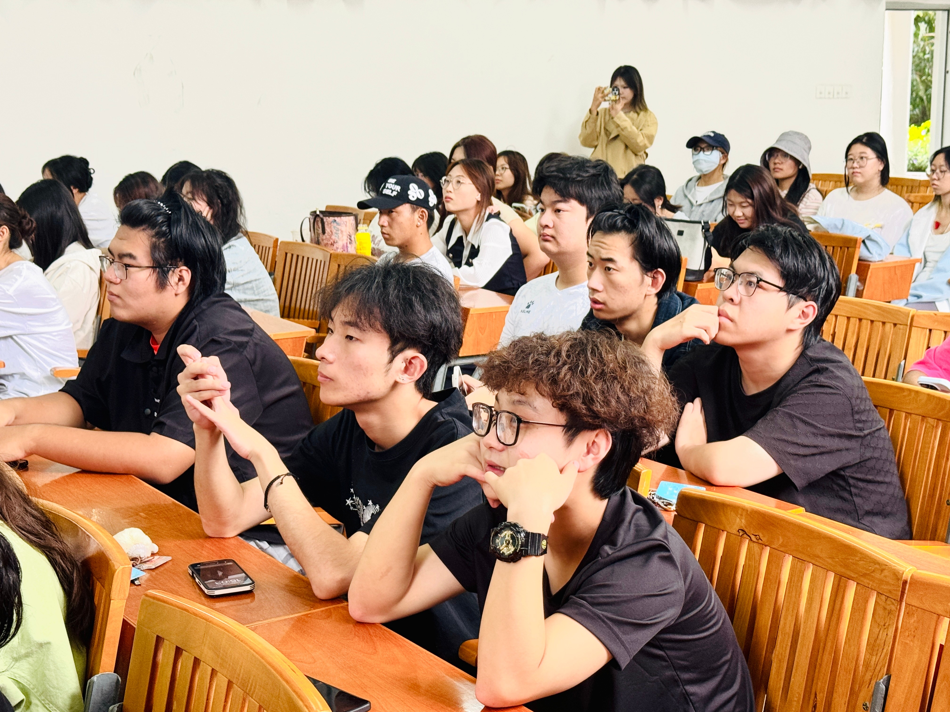 大会上,《写生》课程主讲教师江百汇详细讲解了读涠洲岛写生的各项教学任务指标、风景写生的技法要点与实施路径。结合专业人才培养需求,江百汇老师还为同学们开展摄影基础知识点培训,鼓励全体学生在写生实践期间同步创作摄影作品,积极参与我校第六届涠洲岛“鲸鱼杯”手机摄影大赛,以多元创作提升专业综合素养。