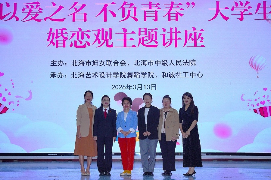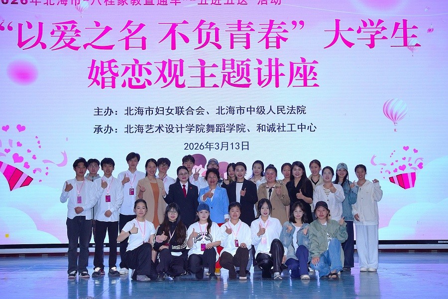 为引导大学生树立健康、理性的婚恋观,构建和谐亲密关系,近日,由北海市妇女联合会、北海市中级人民法院主办,北海艺术设计学院舞蹈学院和诚社工中心承办的“八桂家教直通车”“五进五送”之“以爱之名 不负青春”大学生婚恋观主题讲座和法治进校园志愿服务活动,在北海艺术设计学院西区大礼堂顺利举。本场讲座由舞蹈学院党支部书记宋慧敏主持,北海市妇联党组成员、副主席、二级调研员余梅,舞蹈学院常务副院长邓欢,北海市妇联家庭和儿童工作部部长王晓峰等领导嘉宾出席活动。