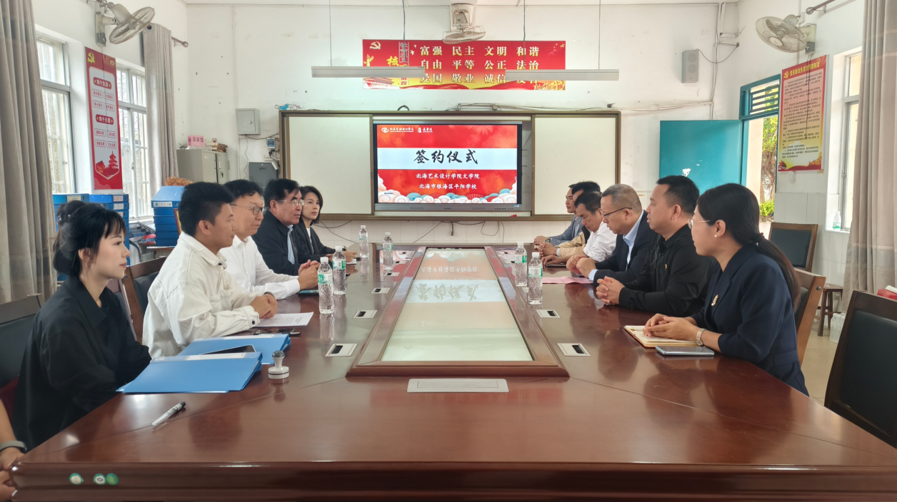 2026年3月17日上午,文学院领导一行前往北海市海城区平阳学校洽谈2024级汉语言文学专业学生见习活动及访企拓岗相关事宜,同时举行校外教学实训基地签约仪式文学院院长黄宇鸿、常务副院长梁镨文、副院长包瑞峰、实验室主任周增懿、汉语言文学教研室副主任康宗明、专任教师马千里,与平阳学校校长杨海生、党支部副书记彭夏、副校长林玉钦、副校长陈汉玲、组织委员苏家发、政教处主任杨贞升等双方代表共同出席了本次活动