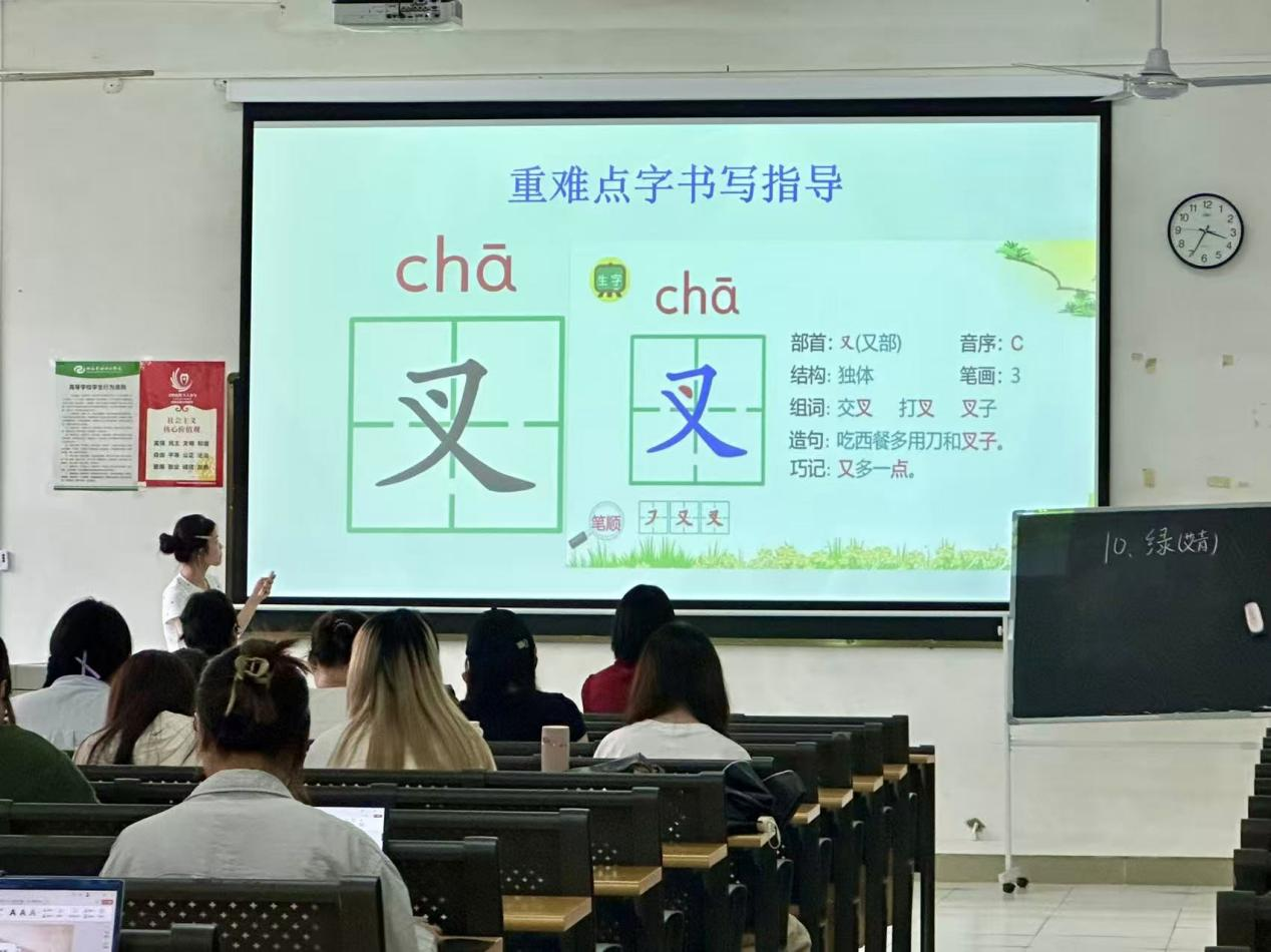 除课堂观摩外,同学们还化身“小老师”组织班级及课间活动,陪伴小学生互动学习,在实践中感受教育温度,锻炼组织与沟通能力。同时,大家结合听课所与教材内容认真撰写教案,对教学目标、环节设计、板书构思等细节反复打磨,梳理教学思路,提升教学设计能力。