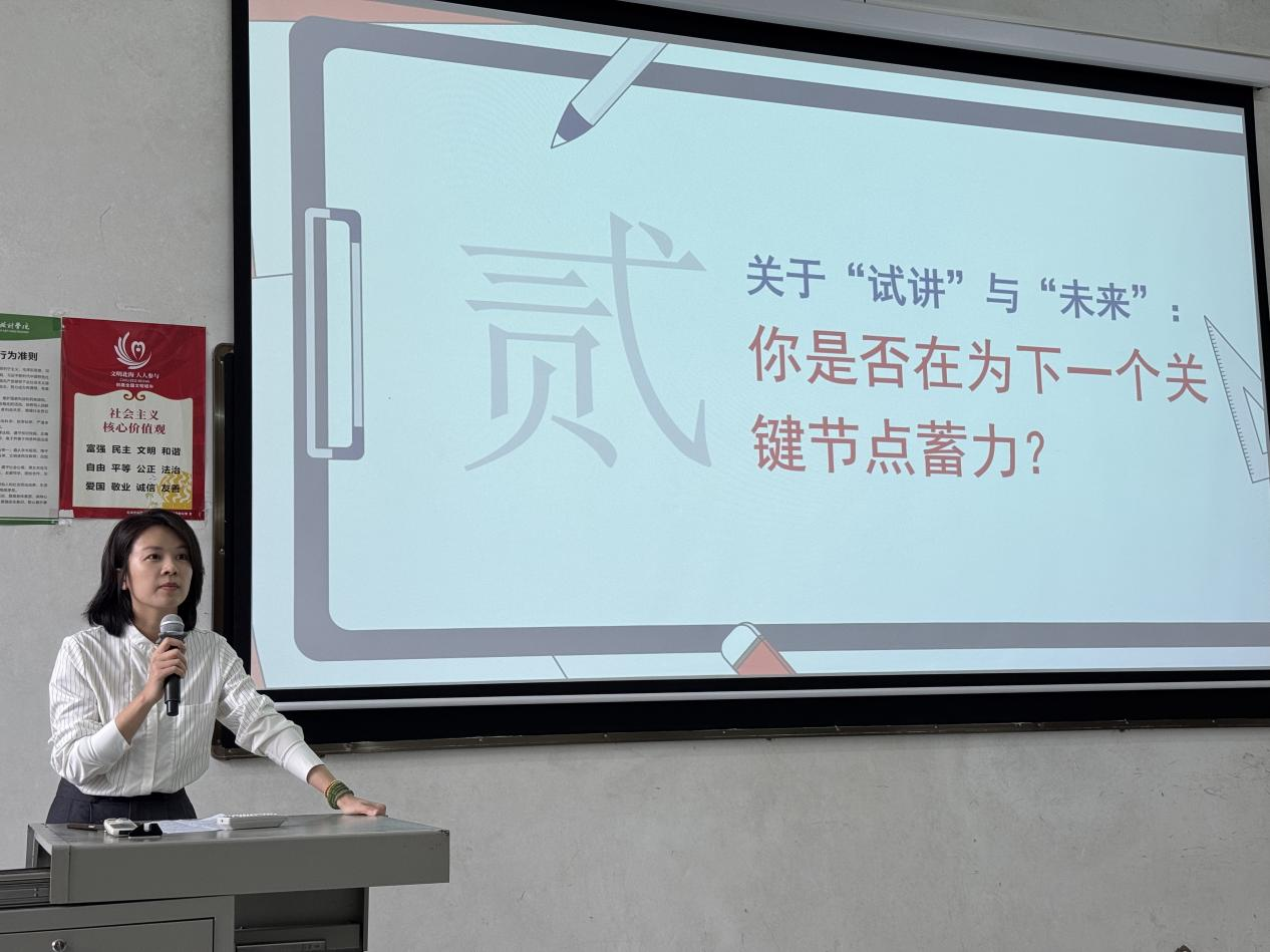 活动圆满落幕之际,文学院常务副院长梁镨文在总结会上发言,对同学们在见习期间所展现出的认真态度与探索精神予以肯定,同时,也启迪众人以见习经历为镜,思考未来的职业发展方向。她表示,此次见习是大四实习的预演,同学们应当在其中完成“学生”到“见习教师”的角色转换,把握宝贵的实战机会,并在实践中重新审视职业热爱与实际的落差,找准未来规划的方向。最后,梁院长希望同学们带着研究的眼光看待实践,将学业与未来职业连接起来,真正成为能把理论知识转化为工作能力的应用型人才。