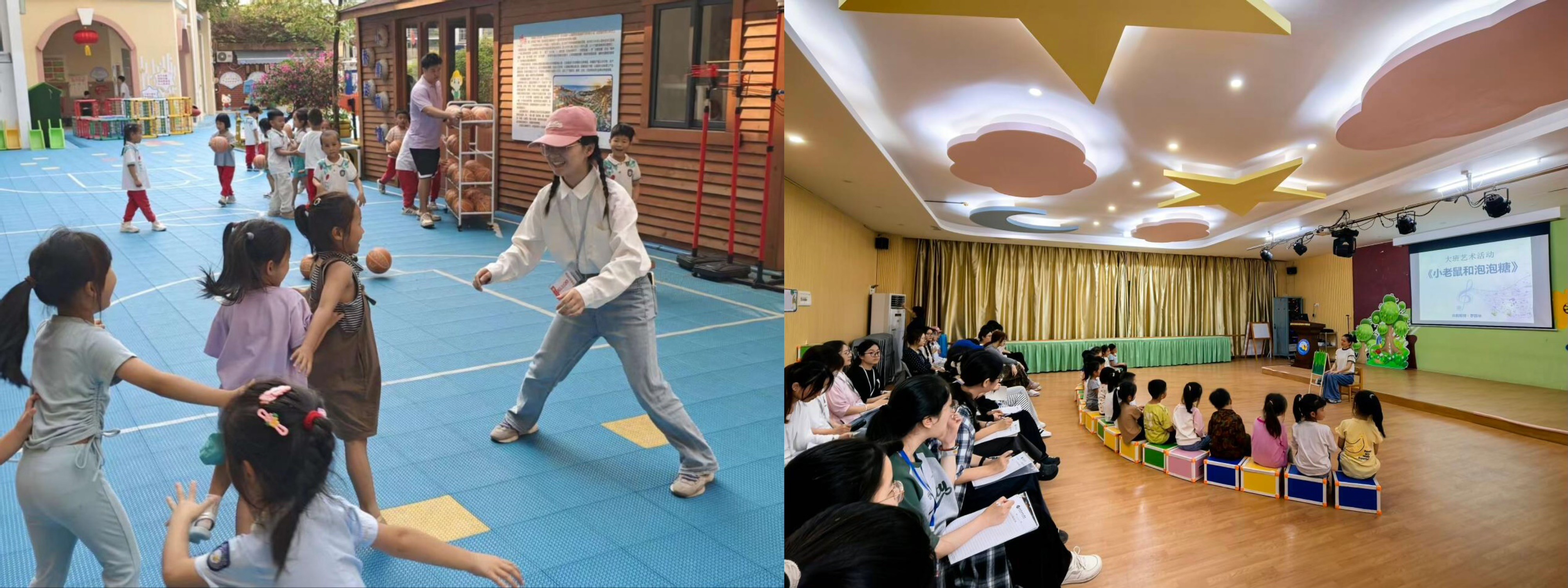 学前2502班唐南征同学开展户外活动     学前2502班与幼儿一起观摩教育活动