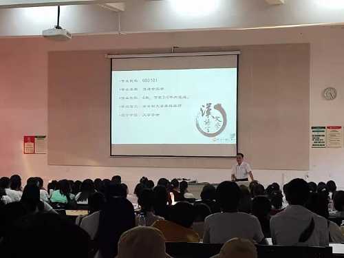 接下来黄教授着重介绍了我院汉语言文学专业的师资队伍、专业特色、培养目标、核心课程、就业岗位等方面的具体情况。黄教授指出,我院汉语言文学专业不仅从校外引进了高层次人才,而且近几年培养了一批年轻的优秀教师,这为我院汉语言文学专业的发展和学生们的求学提供了强有力的后盾,希望同学们可以在老师的教导下认真学习,提高自己的专业素养。另外,黄教授教导学生们要做好大学学习规划,尽力考取相应的证书,为就业打好基础。