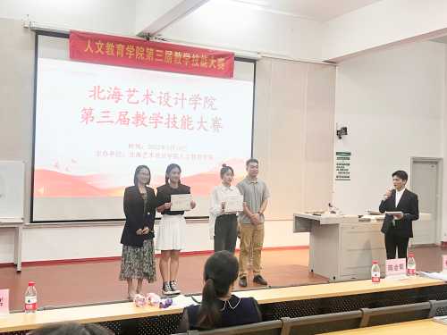比赛结束,人文教育学院院长熊秀峰对本次比赛进行发言,熊秀峰院长指出,本次教学技能大赛为同学们搭建了交流、展示、观摩、学习的专业舞台,进一步增强了同学们提高教育教学技能与综合素质的紧迫感和自觉性,对激发学生爱岗敬业、教书育人的责任感与使命感起到了推动作用。在疫情下,同学们的学习虽然受到不少影响,但各位同学仍然砥砺前行,抓住每一次机会,提升自己,追求梦想。各位参赛选手以饱满、积极向上的精神风貌展示了各自的风采,展现了扎实的专业综合素质和教学能力。希望同学们通过不断了努力,成为更加优秀的北艺学子,不负梦想,不负韶华。