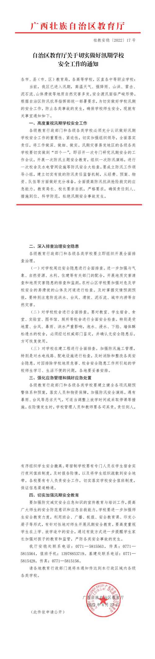 自治区教育厅关于切实做好学校汛期安全工作的通知