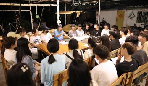 白天,在老师们的带领下,同学们有序深入景区、村庄,通过观察走访体验感悟、实地踏勘拍摄记录、艺术采风绘画写生,结合课程所学知识,感受、观察、分析涠洲岛自然风貌与人文聚落,领悟地方性色彩、空间等元素的构成魅力,并以自身理解运用美术基础与设计表现技法绘出“设计色彩”图幅。过程中,老师们悉心指导,帮助同学们了解掌握取景、构图、取舍、表现。晚上,专任教师辅助指导,教授以班级为单位开展评图教学课堂。微弱灯光抵不住同学们对专业知识学习的偌大热情,每位同学积极听取指导教授的点评意见,努力提高自身的艺术涵养与表现技法。