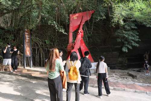 此次“涠洲岛”实践教学活动,全体师生还专门奔赴涠洲岛红色广场开展“红色涠洲”实践教学课程。涠洲岛红色广场是以纪念碑为主体的红色教育基地,包括红色剧场、红色之路、国防教育馆等场所。课程开展期间,同学们认真聆听思政老师讲诉涠洲人民在抗战时期以各种方式英勇抗争的英雄事迹。课后,同学们瞻仰革命烈士纪念碑,重走红色之路。此次红色教育课堂让同学们深入了解了涠洲红色历史,赓续红色血脉,增强家国情怀。