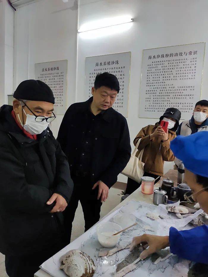 王教授对近年来,北海贝雕通过校企合作,让学生更好地了解北海贝雕,培养传承人,自觉参与技艺培训,积极推动北海贝雕国家级非物质文化遗产的传承与发展表示肯定。他指出,校企合作是解决北海贝雕人才培养的重要渠道,通过校企合作,从高校纯艺术专业人才,提升贝雕艺术的,结构,线条,空间,格调的美术,提升审美情趣,推出多元化产品,迎合新时代审美的变化,北海贝雕一定能走得更远,我坚信,中华民族艺术是不可磨灭的。他表示本次调研回去后,他也将继续作深入研究,共同为保护,传承和发展国之瑰宝——北海贝雕献出自己的智慧和力量。