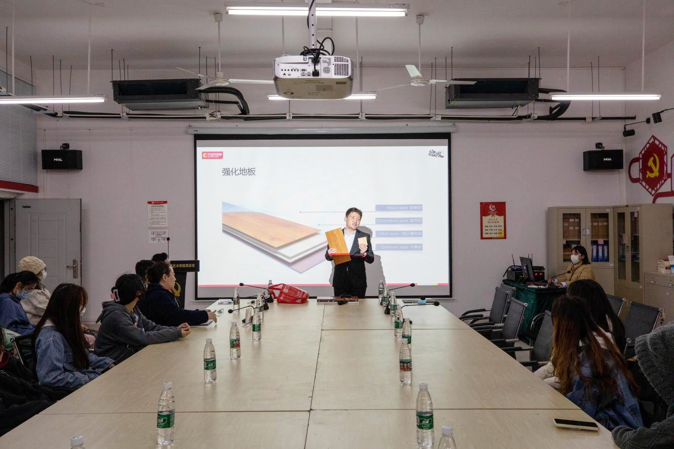 为了更清晰明确木地板在实际设计装修中的应用,建筑与环境艺术学院于2022年12月8日在功德楼507开展《品牌力量与职业规划》系列讲座——木地板材料介绍。本次讲座诚挚邀请到大自然地板、大自然木门品牌负责人;大自然全国标杆经理人郑雷主讲。