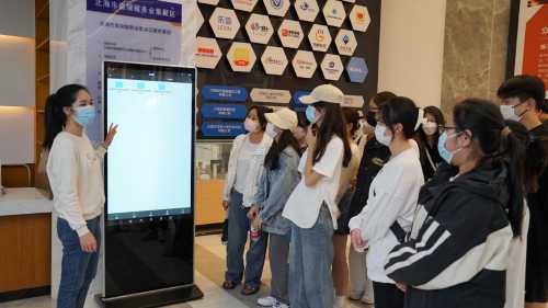 师生听北海365负责人讲解企业发展历史与文化,了解企业业务