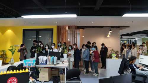 园区负责人梁张月带领师生进行参观,通过讲解介绍园区的企业文化、办公环境、就业政策、园区配套等情况,并实地参观北海365、卓美文化、纽博生物等部分企业。