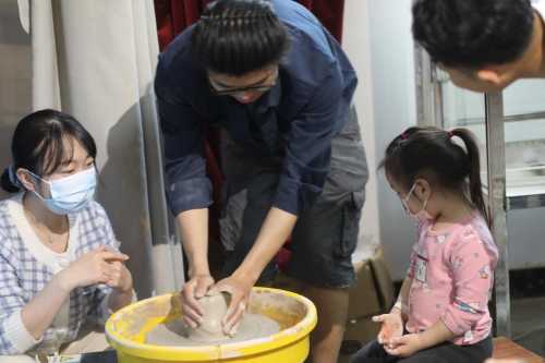 本次校企合作主题活动由美术学院副院长金凯婧策划,雕塑教研室主任黄寿宁主持实施。雕塑专业教师冯鑫、于文成老师授课,另有雕塑专业和摄影专业学生8名学生参与此次活动完成实习。课程讲授了陶器的起源、种类、制作等小知识,为小朋友打开了陶瓷艺术的宝库,增强了小朋友对陶器的认识和兴趣,对其在成长过程中进一步了解历史文化知识有一定的助力。