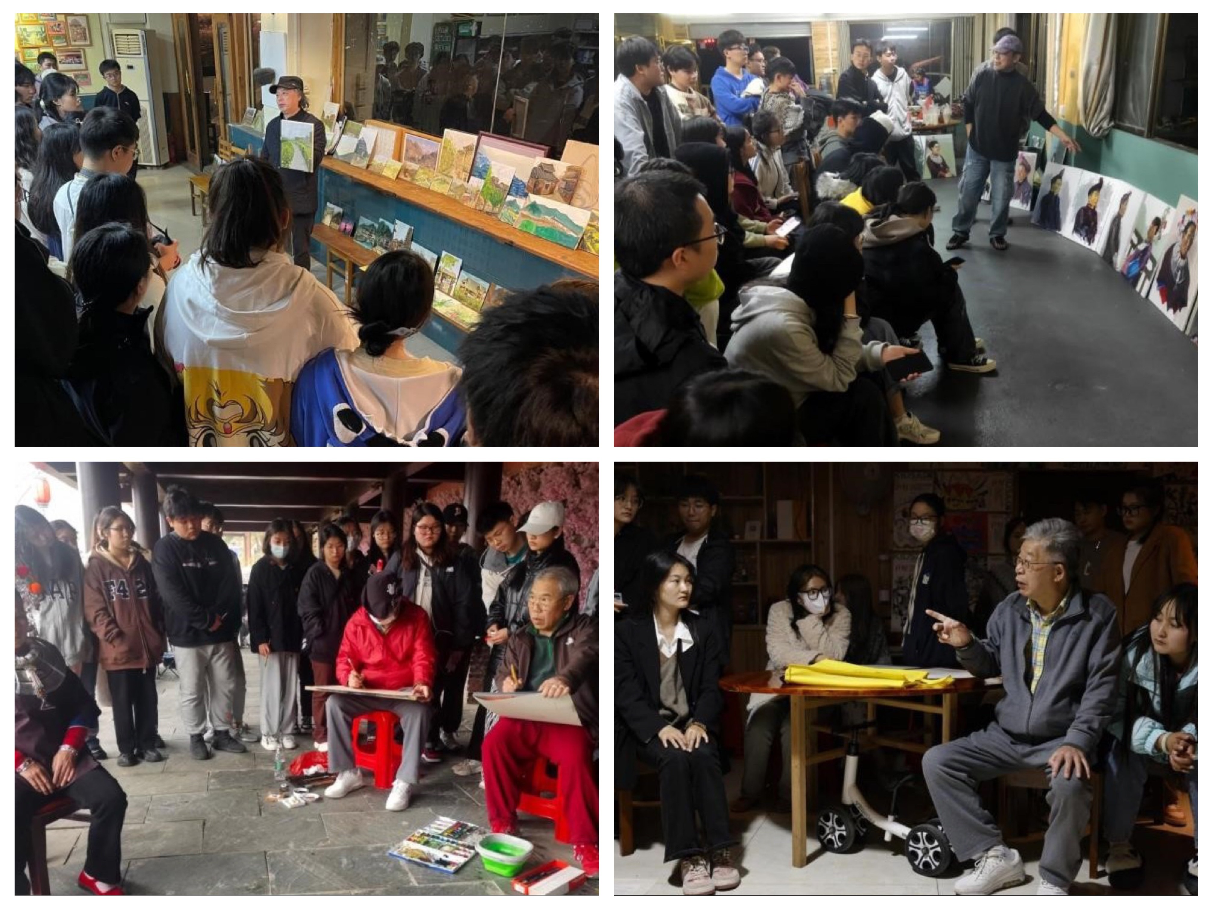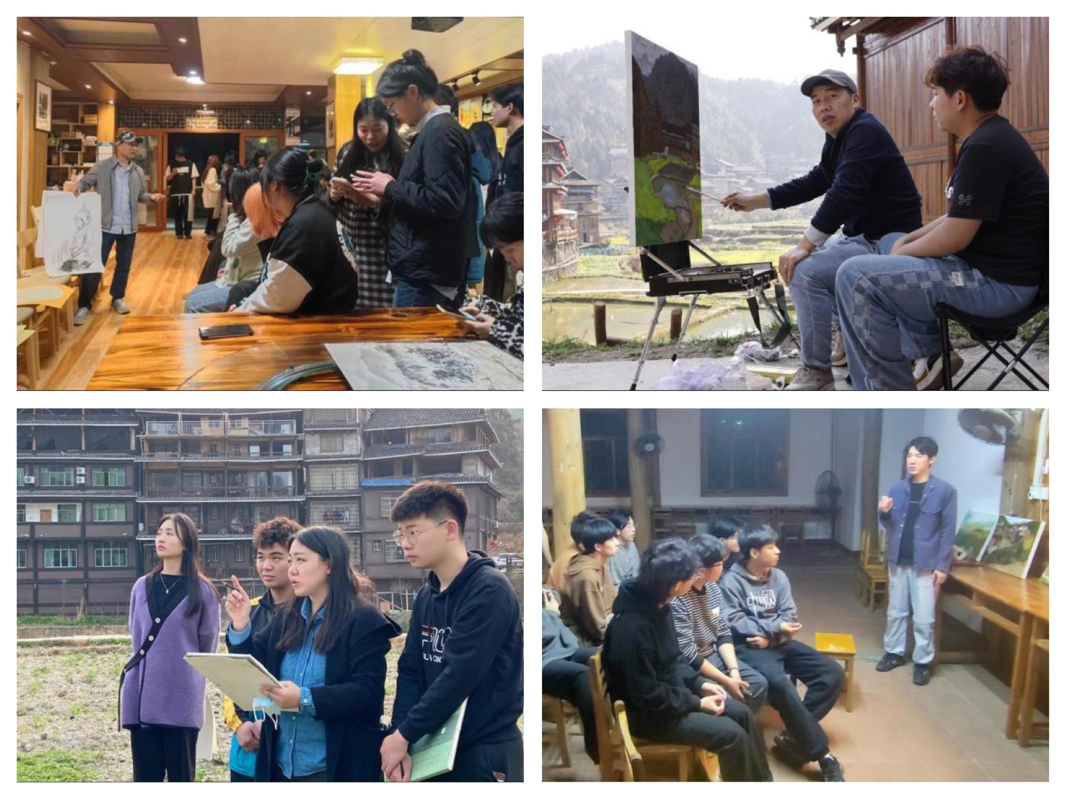 此次写生有曲湘建教授、刘斌教授、王少军教授、崔君旺教授、王跃奎教授、龙义敏教授、张云杰教授、龚为教授等教师为学生现场示范指导。