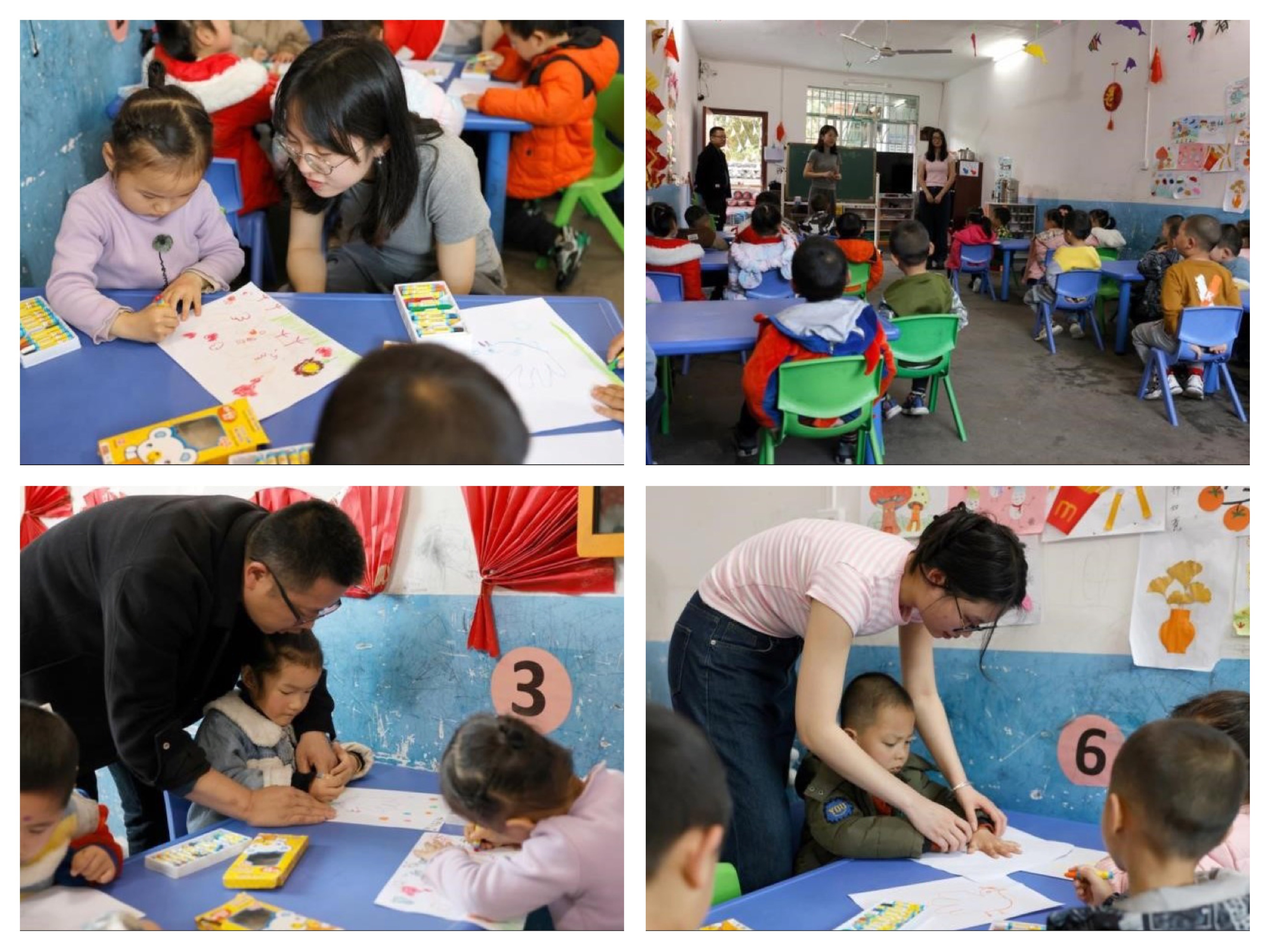 2023年3月9日,龚为教授、张云杰教授、肖玺副院长、鲁明阳副书记、郭刚老师前往三江蓝精灵幼儿园为孩子们送去绘本。老师们在写生前了解到地方幼儿绘画教育资源匮乏,挑选出优秀的学生绘本作业制作成绘画图书,并安排学生为大班的孩子们讲授一堂绘画课程。