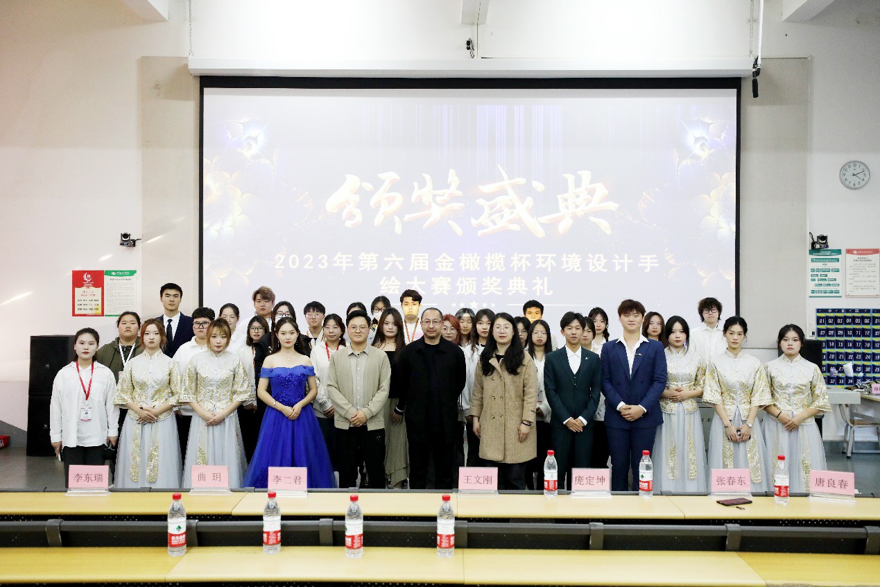 (第六届“金橄榄杯”环境设计手绘大赛颁奖师生合影)