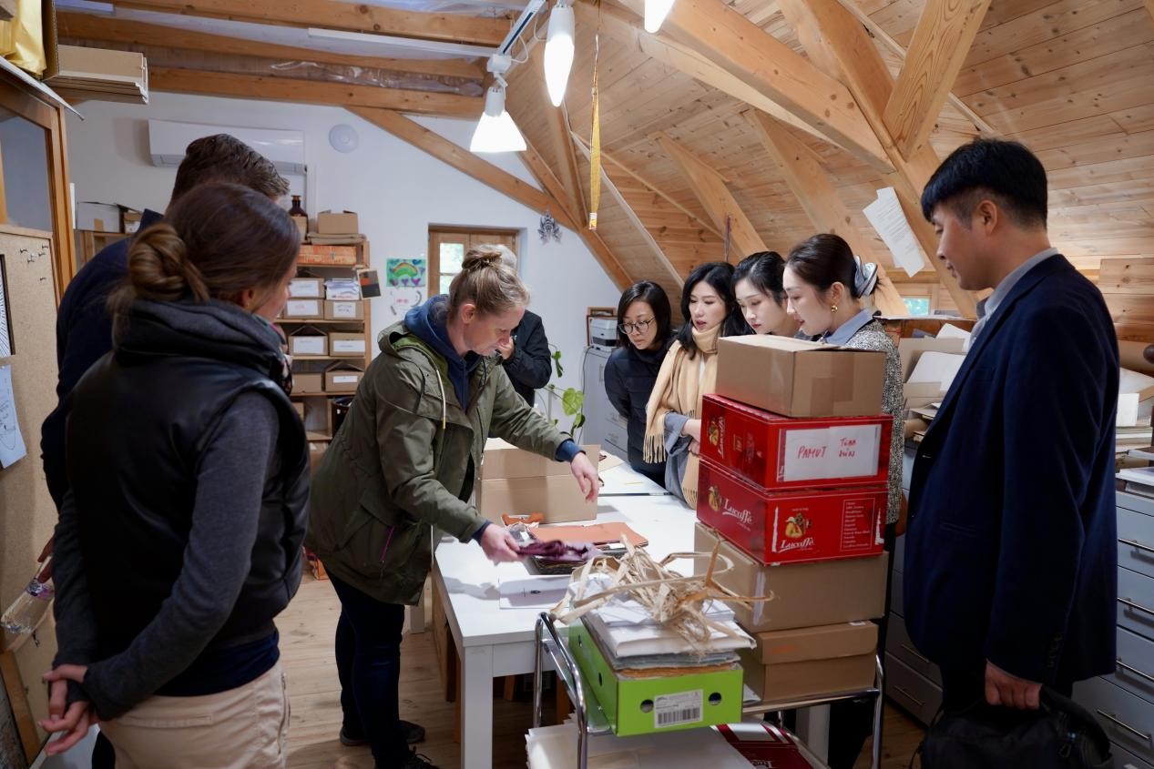 此外,院长Prof Gabriella Medvegy亲自带领代表团一行参观了梅切克山丘、电视塔及特蒂耶遗址、卓奈依博物馆、瓦萨雷利博物馆及现代匈牙利画廊。通过欣赏不同时代艺术家的杰出作品,代表团深刻感受了匈牙利艺术家创作理念的演变发展,以及艺术设计、工程技术与佩奇这座城市的完美融合。值得一提的是,通过实地走访当地的传统纸张艺术工作室及陶瓷工作室,代表团成员们了解了匈牙利对传统工艺的传承和创新思想,也对匈牙利的艺术设计创新实践有了更为直观且深刻的了解。