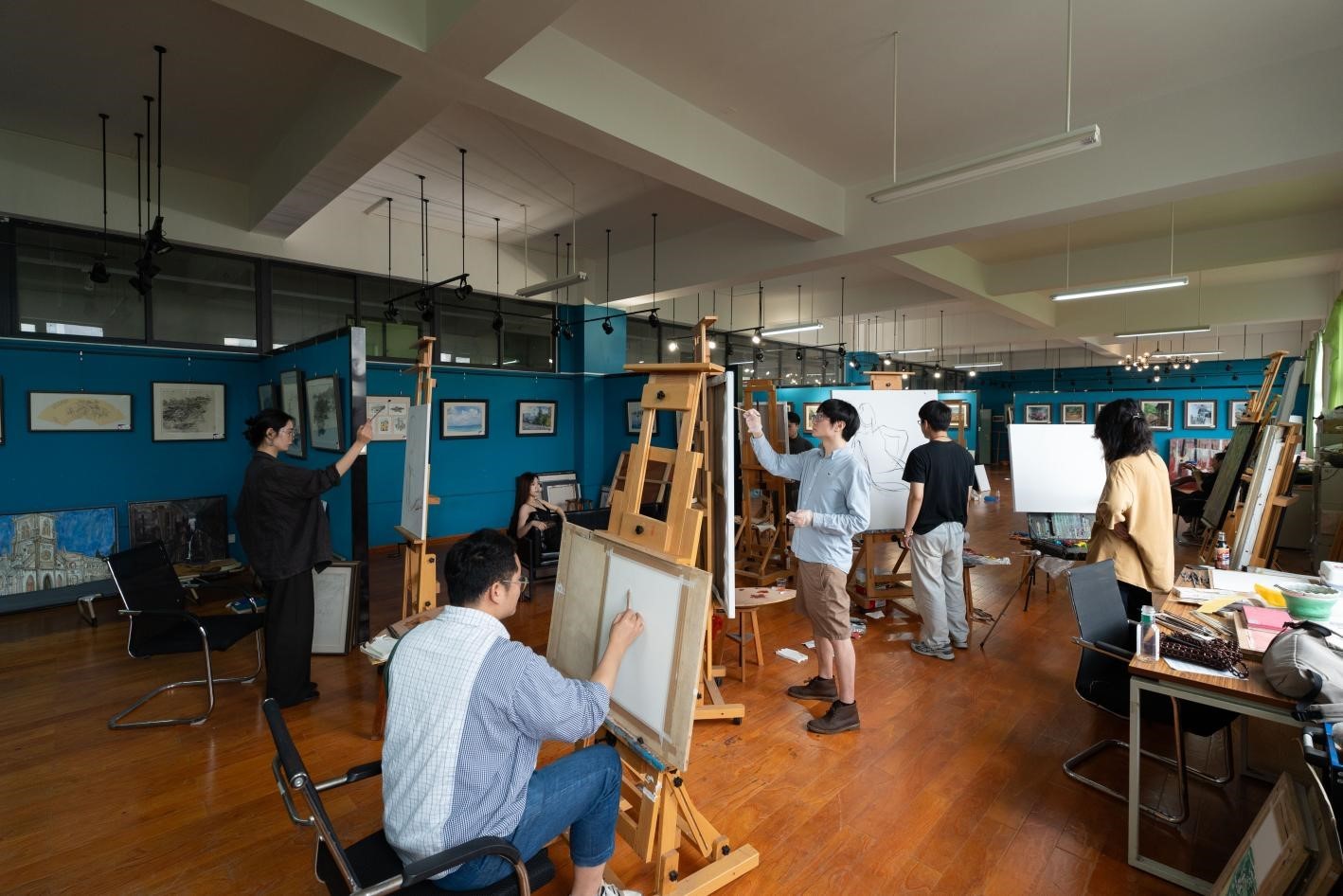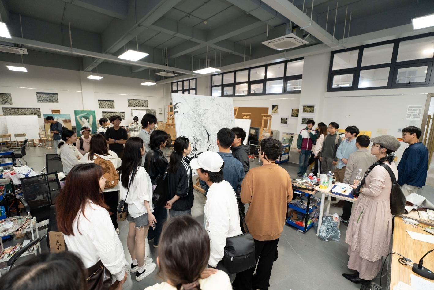 参观结束后,双方教师在绘画教研室举行了写生交流活动。双方就如何在写生教学中培养学生的观察力和创造力、如何将地域文化元素融入艺术创作等问题展开了深入的探讨。在交流过程中,双方教师在现场进行了绘画示范,展示了不同的绘画技法和表现手法,让学生们近距离感受到了艺术创作的魅力。