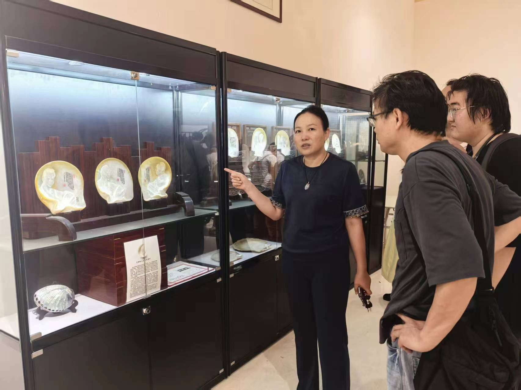 在贝雕馆,贝雕大师林雄介绍了贝雕这一独特工艺。贝雕是利用贝壳的天然 色泽、纹理和形状,经过精心设计、雕琢而成的工艺品。林雄大师展示了如何巧妙地将贝壳的美与艺术创作相结合,他的作品充满了浓郁的海洋风情和生活 气息,让学生们体会到贝雕艺术与海洋文化的紧密联系。