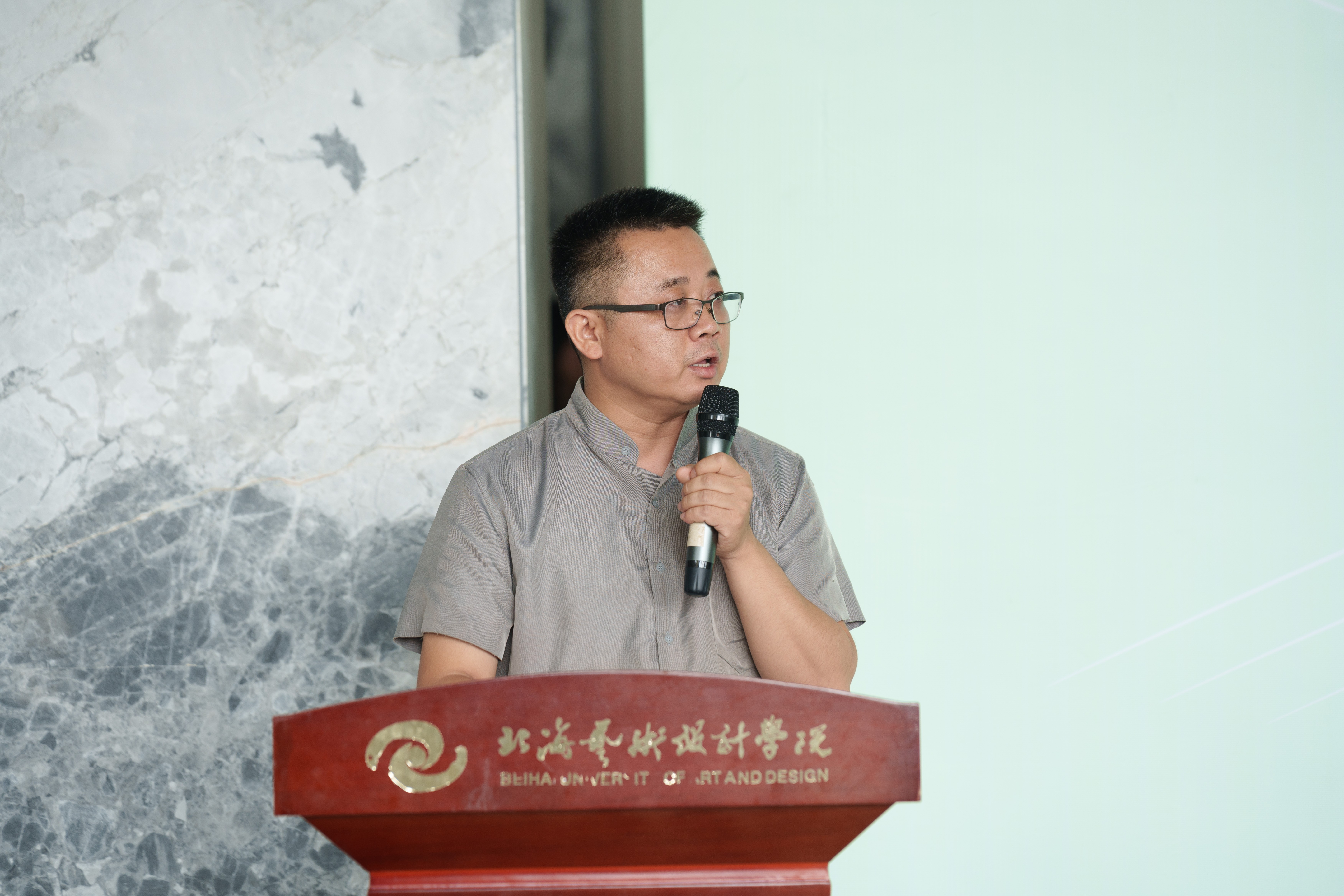 随后,美术学院执行院长龚为致辞,美术学院以“发现美—表达美—传递美”为育人脉络,融入地域文化教学。“青衿致远艺路同行”2025教学成果汇报展,荟萃学生佳作,是对人才培养成效的检阅。学院始终以北海独特的海洋文化与西部风情为创作源泉,引导学生扎根本土、深植生活。展览见证学院教育理念,也是学子深造启程号角,诚邀各界观展,共话美育未来,培育更多应用型美术学类人才。