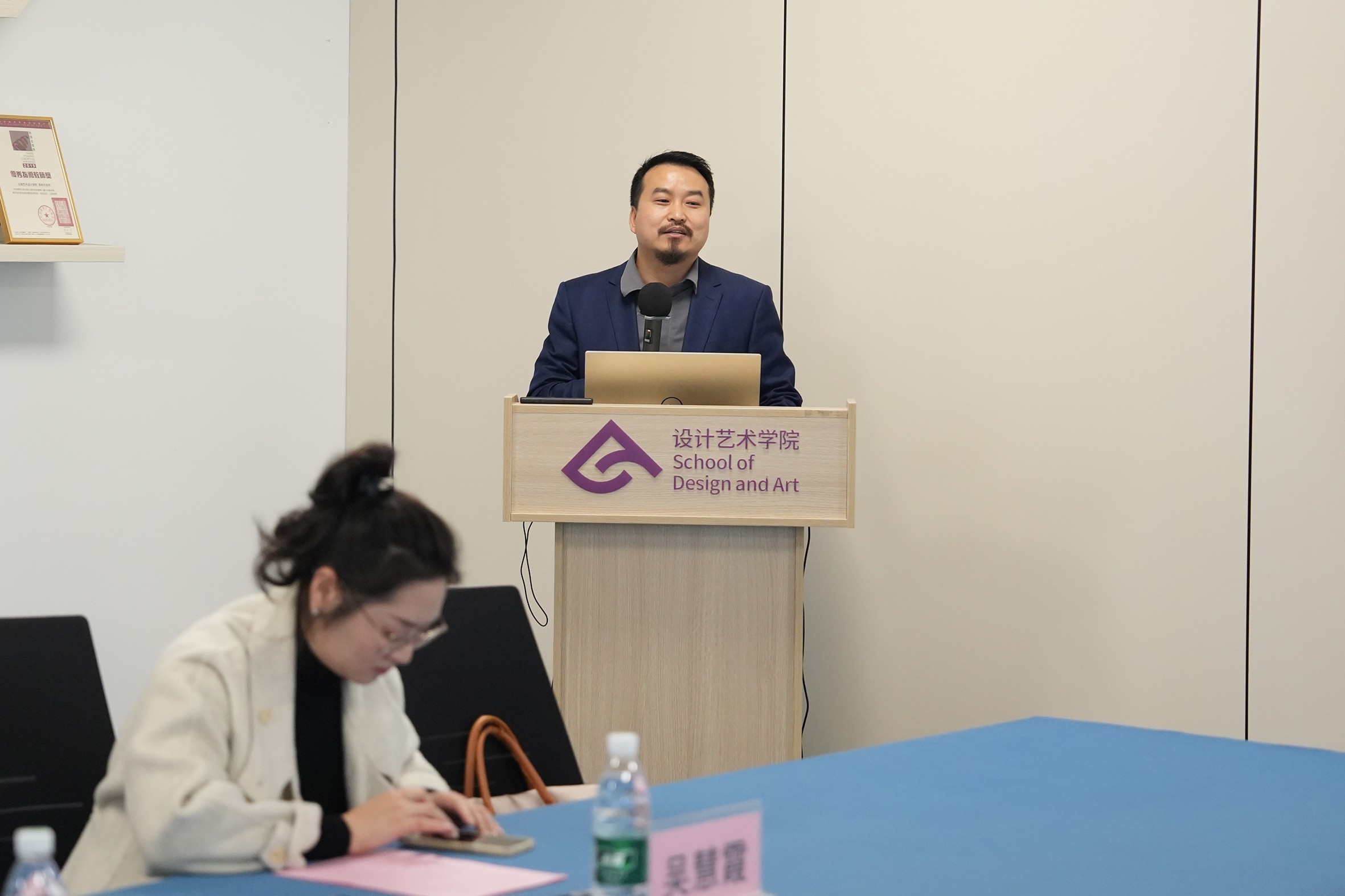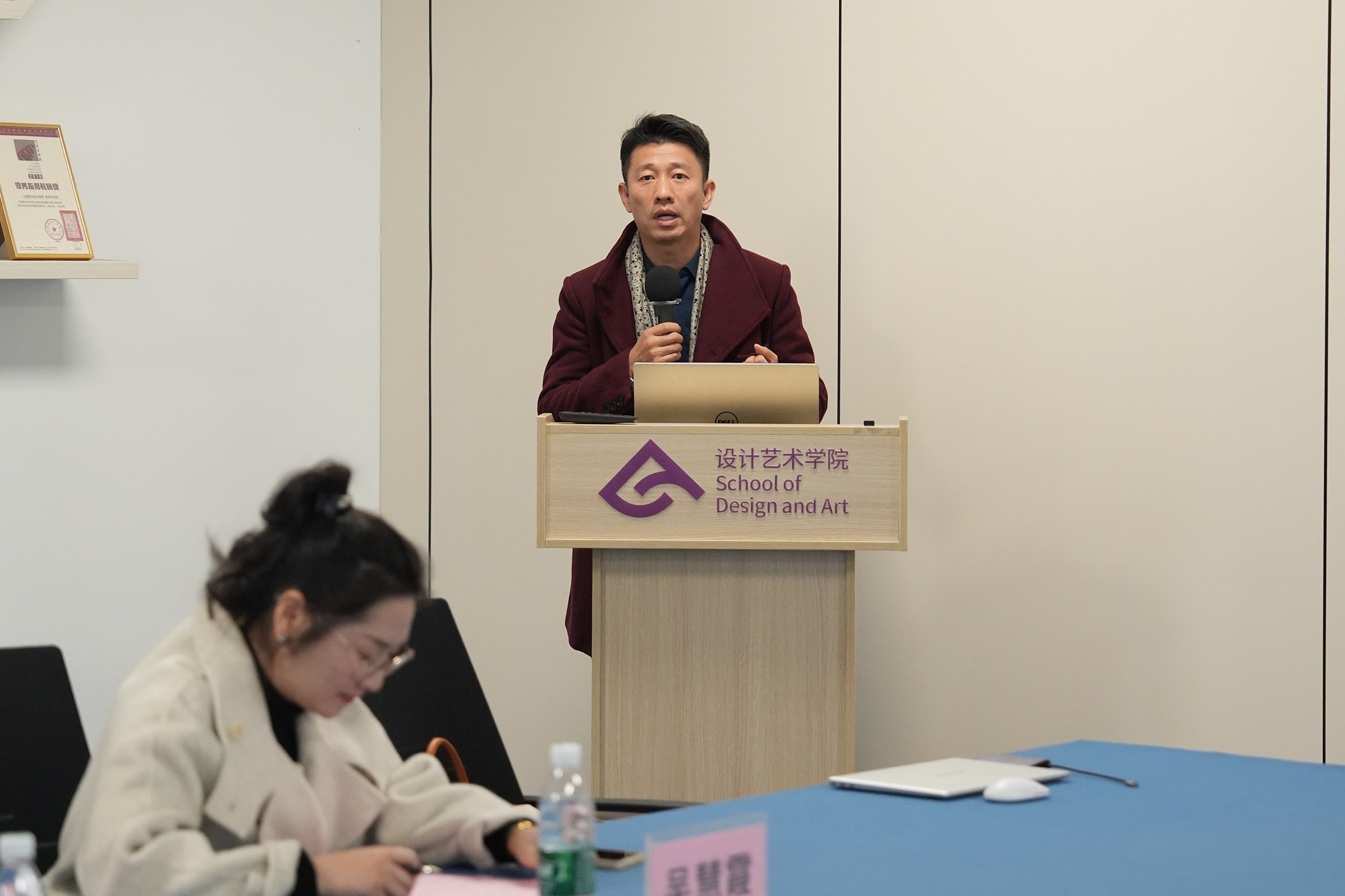 李林平院长向到场嘉宾致以诚挚的欢迎并介绍学院的概况。设计艺术学院以“立德树人”为核心,围绕学依托北海北京3+1双城育人、双名(名校、名师)引领的办学模式通过深化“产教融合、专创融合、专思融合”三融合,构建通识教育、创新创业与素质拓展、专业教育和实践教育四模块的课程体系,采用理实一体化、教学项目化、培养合作化、评价多元化,质监常态化等教育教学方法。自治区基层教学组织“传承非遗·创新海丝”文化创意教学研究团队创“文化文创文旅、共情共鸣共享‘双侧体验’”的人才培养模式。即通过艺术设计专业链与文创文旅产业链、理论教学环境与职场实践环境、校内教学过程与企业工作过程、课程作业内容与市场行业标准对接,开展教学改革,构建情境育人与文化共情、产教融合与文创共鸣、校企合作与文旅共享的三递进课程模块与教学模式,并展示视觉专业相关教学成果。最后,希望各位专家能够与我建立起长期交流机制,为学设计艺术方面的人才培养、教学创新等方面提宝贵意见和建议,并预祝本次研讨会取得圆满成功。