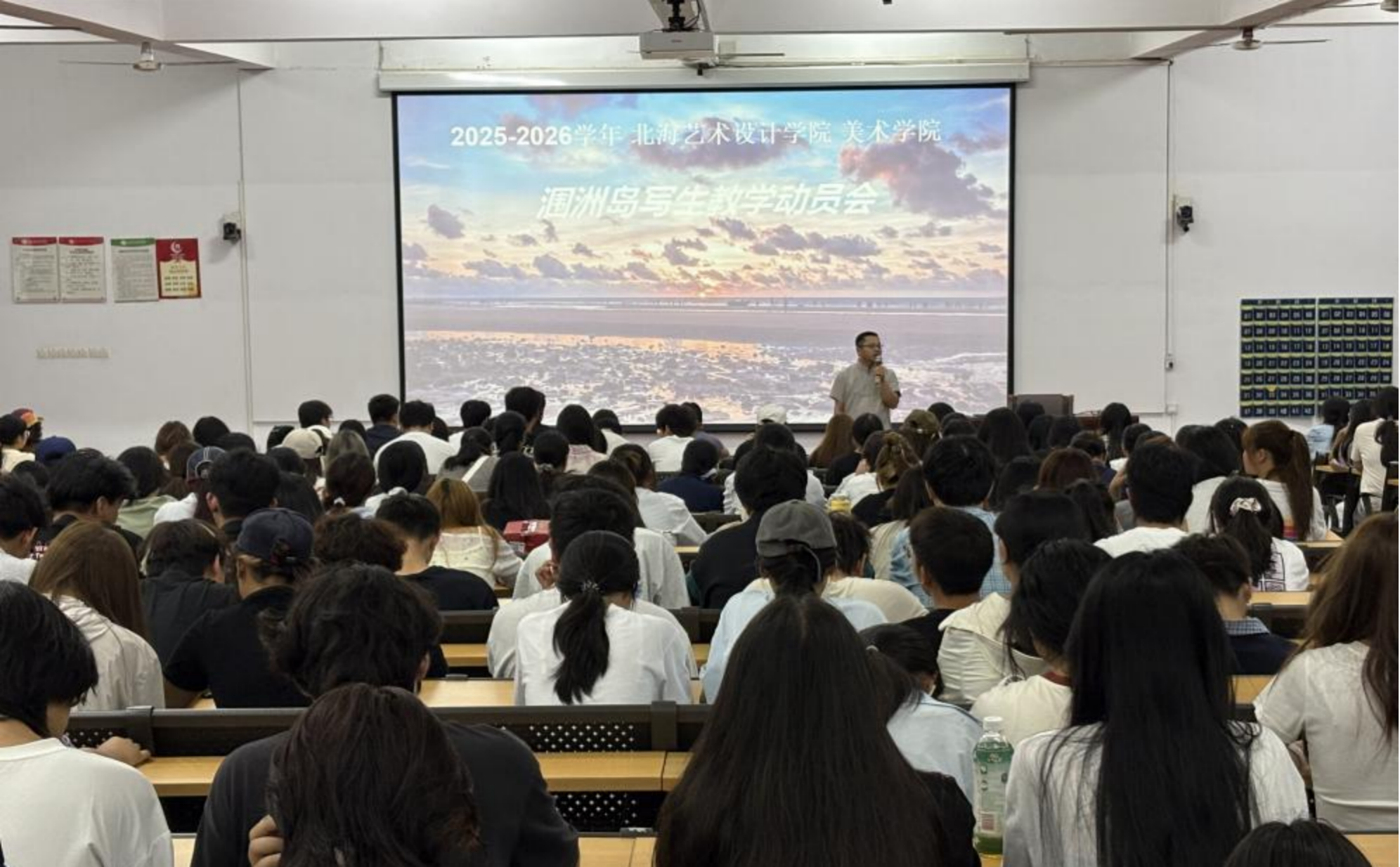 2025-2026学年美术学院涠洲岛写生教学动员会10月12日在伦理楼107展开。会议由美术学院院长龚为主持,全体25级学生、本次写生任课教师及各班辅导员参会。