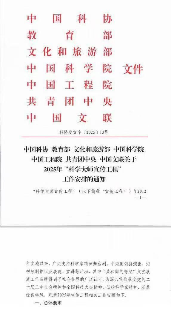 2025年“科学大师宣传工程”工作安排通知的红头文件