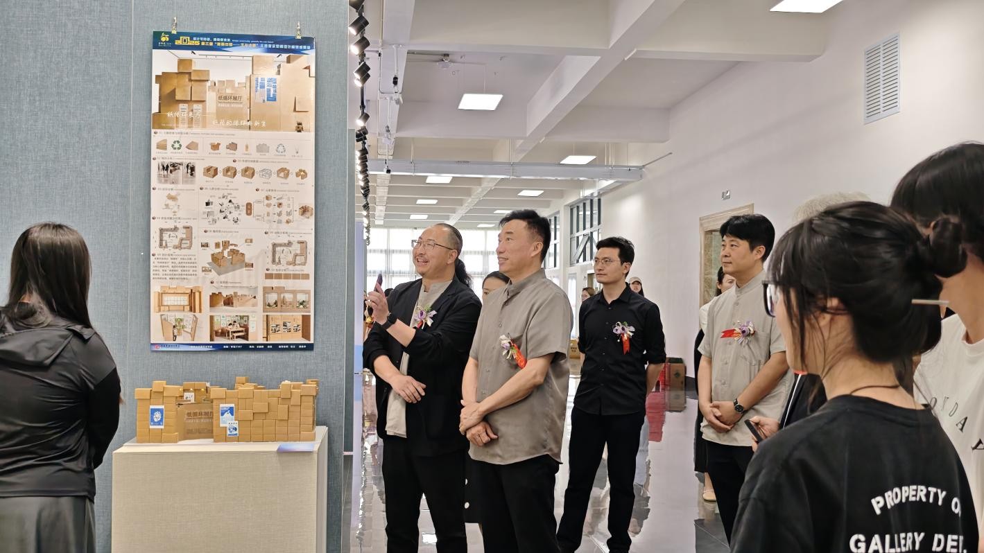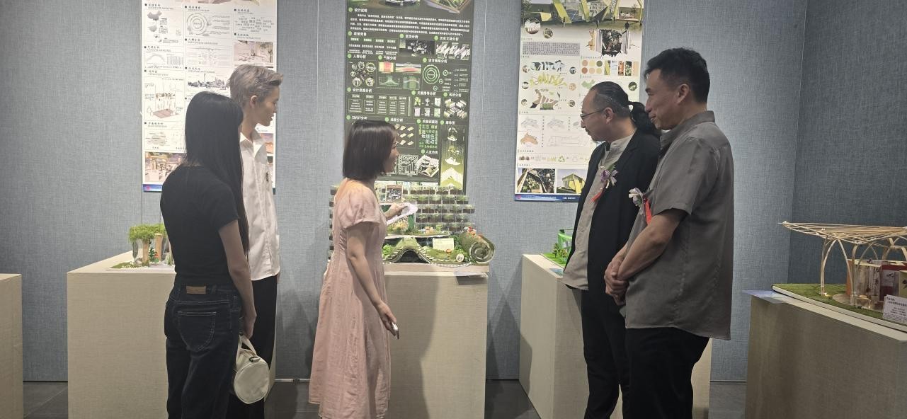 建筑与环境艺术学院副院长蔡世伟在发言中,对参展作品背后师生的辛勤付出表示认可与感谢。他鼓励学生们以创新设计为载体,深入探索文化传承与可持续设计的融合路径,践行“绿动新未来”的理念,同时对学生们在作品中展现出的专业素养和创意思维给予了充分肯定。