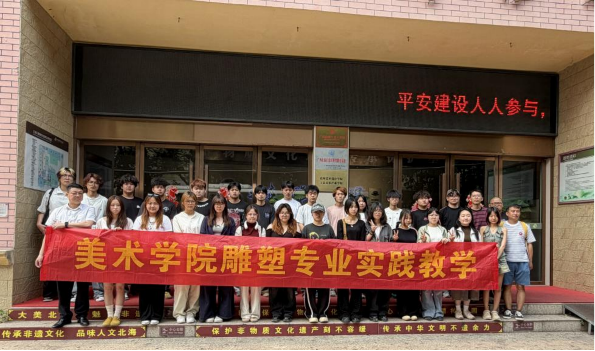 当日上午,师生们满怀期待抵达北海贝雕博物馆。作为全国唯一以贝雕技艺为主题的专题博物馆,该馆集中展示北部湾贝雕历史发展、工艺流程与经典作品,是学习传统浮雕、研究民间雕刻语言的重要实践基地,馆内藏品充分展现贝雕与浮雕艺术结合的独特魅力。