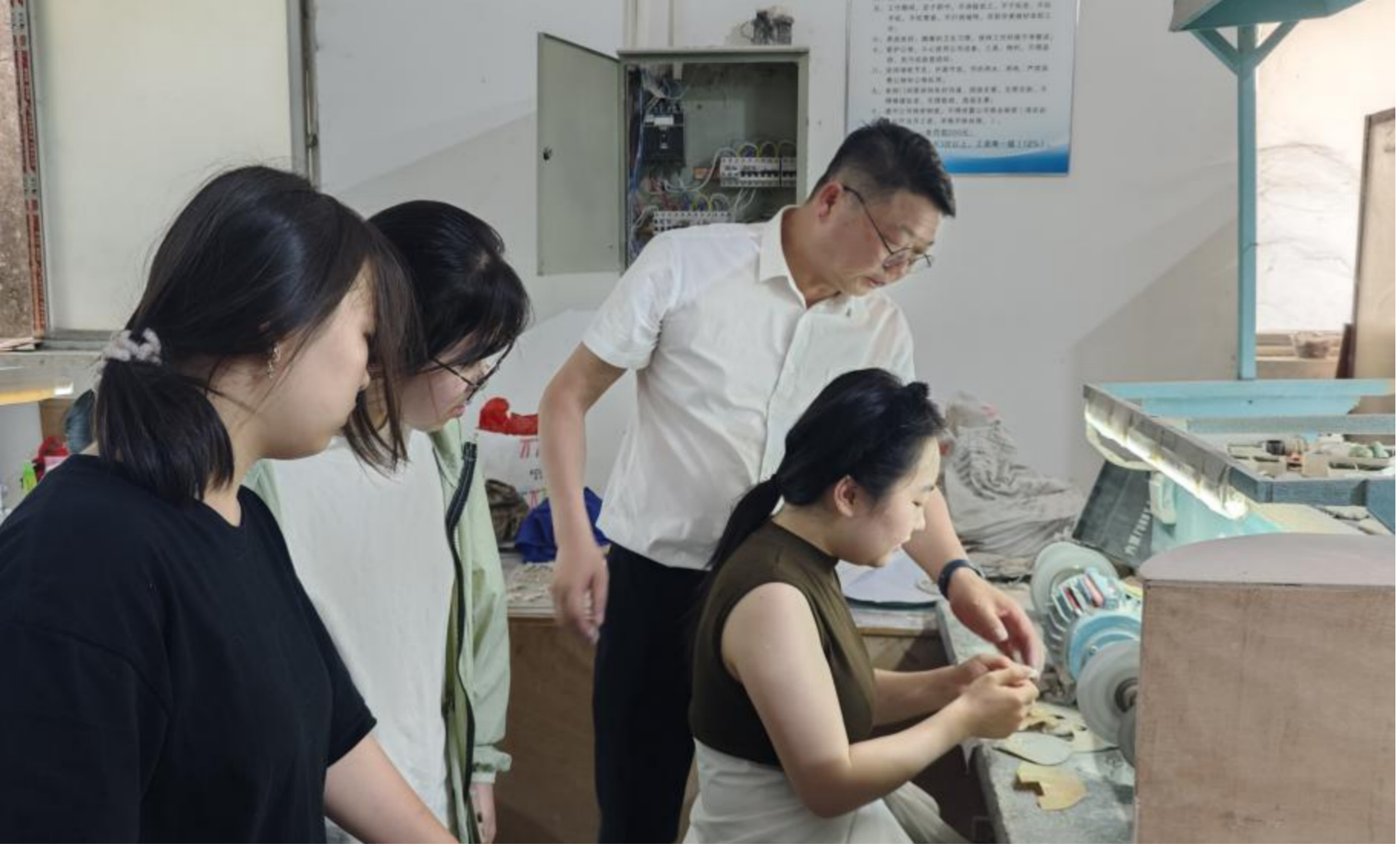 图五 林雄大师指导学生进行贝雕制作