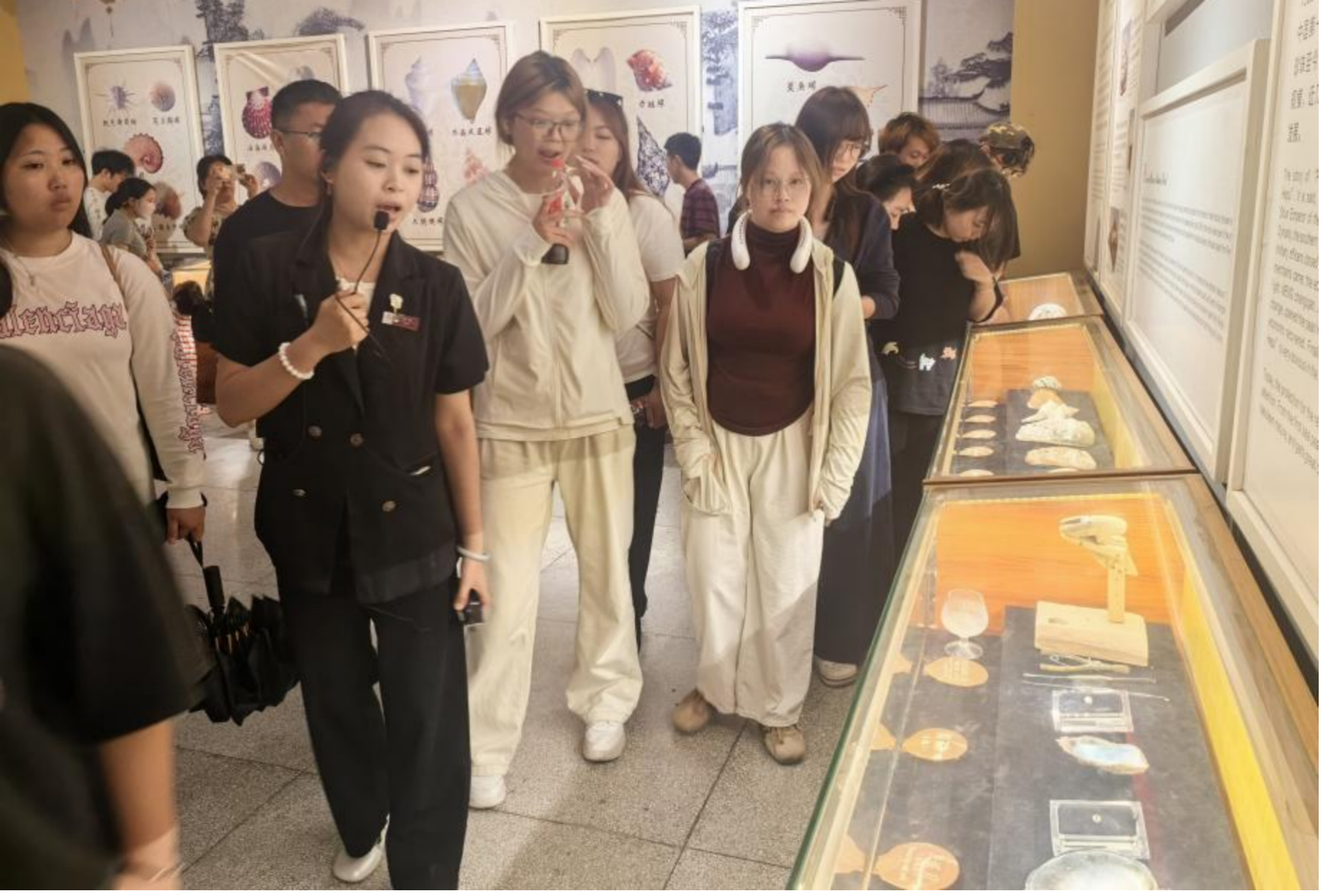 图三 讲解员为师生讲解贝雕艺术