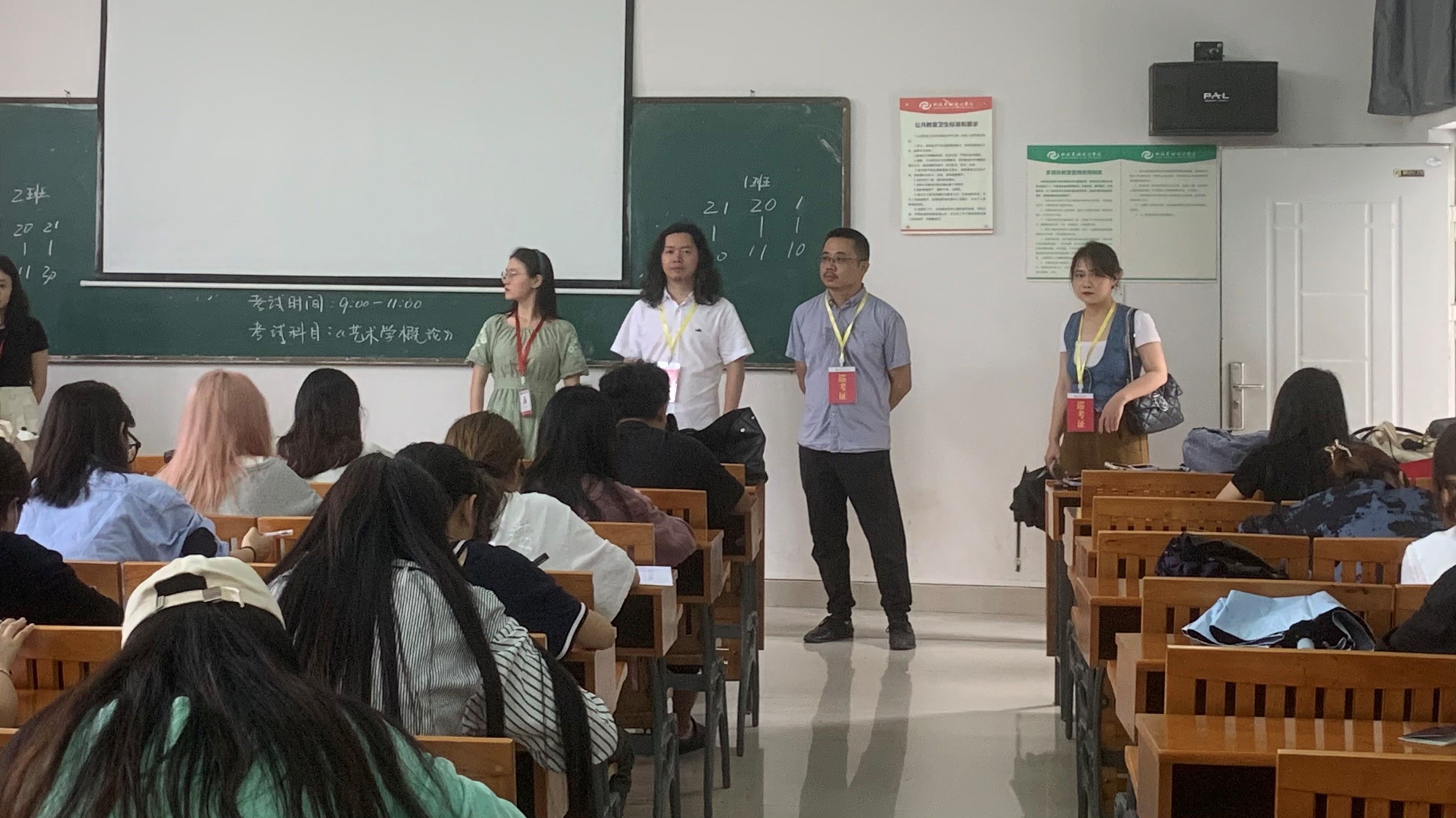 根据学校教学工作统一安排,美术学院于6月9日至6月12日开展本学期专业课程期末考试。期间,北海艺术设计学院副校长胡胜,教学质量监控办公室副主任郑岩,美术学院党总支书记韩玮,美术学院副院长龚为,综合办主任肖玺,综合办副主任陈建江,绘画专业负责人张湘中,雕塑专业负责人金凯婧,摄影专业负责人李炫勋,在考试中往返于功德楼、伦理楼各考场,进行美术学院专业课程期末考试巡察工作,并与考务人员进行深入交流,对考场布置与秩序维护等有关工作进行指导。(肖玺 摄)