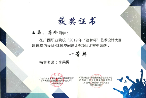 环境艺术学院在2019 年广西“追梦杯”艺术设计大赛中荣获佳绩