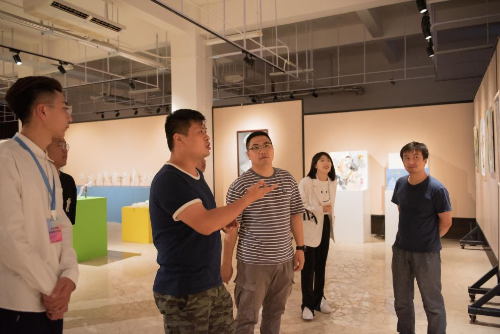 (美术学院常务副院长龚为与学生交流并合影)