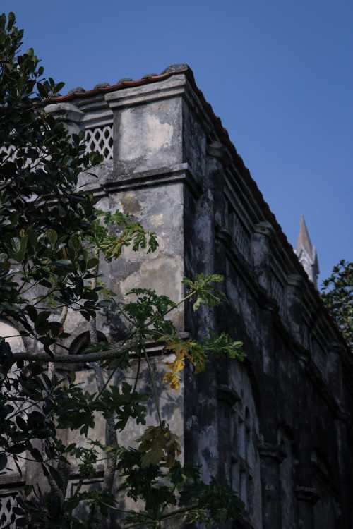 老师带领着学生们展开了五天四夜的写生生活,住在名宿夜晚下课,可以在海边吹着海风,感受着大自然的洗礼。在涠洲岛上低矮的民居中间,有一座有着高耸的罗马式尖塔,法国文艺复兴时期的哥特式建筑,夺人眼目。沧海桑田,星移斗转,教堂墙上的斑驳诉说着历史,诉说着记忆。它历经了风雨的打磨,战争的硝烟,往事已逐渐模糊,唯有建筑孤独地坚守这里,成为时空轮回的说书人,承接着这座岛的过去与未来。