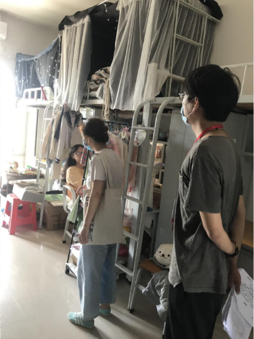 老师们耐心细致地与学生进行交谈,了解学生返校后的生活情况,认真听取学生反映的宿舍问题,能解决的立即解决,不能解决的记录在案并及时上报维修。同时,老师们督促学生要在学习和生活上严格要求自己,疫情防控不能松懈,要注意做好个人的安全防护。此次走访活动是对学生的心理和身体健康的深入关注,发现问题并解决问题,受到了学生一致好评。(王云龙 摄)