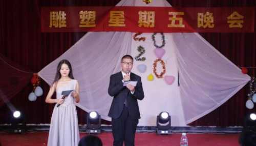 2020年1月3日晚上7:30,我校美术学院雕塑系于西校区艺术楼一楼举办了一场特别的“星期五晚会”。本场晚会由朱余婷和龙睿杰主持,参加本次晚会的有美术学院副院长王习银、办公室主任焦伟娜,教研室主任张湘中、雕塑系副主任金凯婧、教师程宣睿、郭刚以及雕塑系全体师生等。