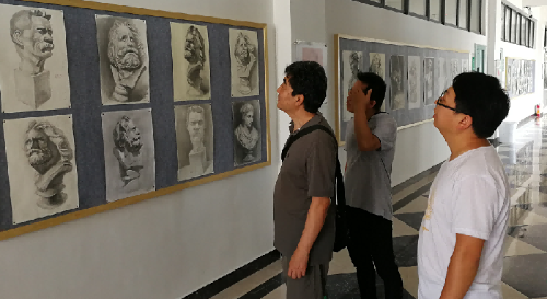 最后高教授来到艺术楼实地指导工作,检查教学文件、抽查平时作业、对绘画专业的写生作品进行讲评。高教授说希望下次再来,可以在课堂实践中对我们进行指导。我们也将期待下次与教授的交流,让我们再次感谢高教授的指导! (陈建江 摄)