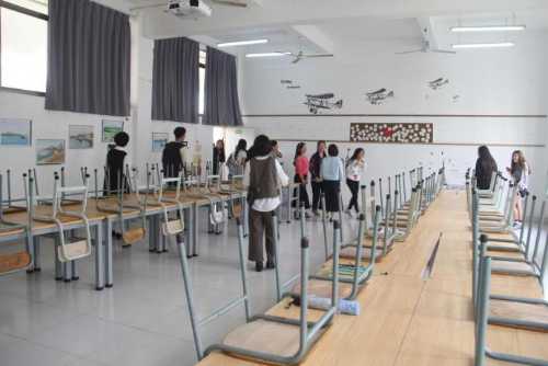 指导老师以及评分干事们来到经过同学们精心美化的教室,认真负责的进行打分。
